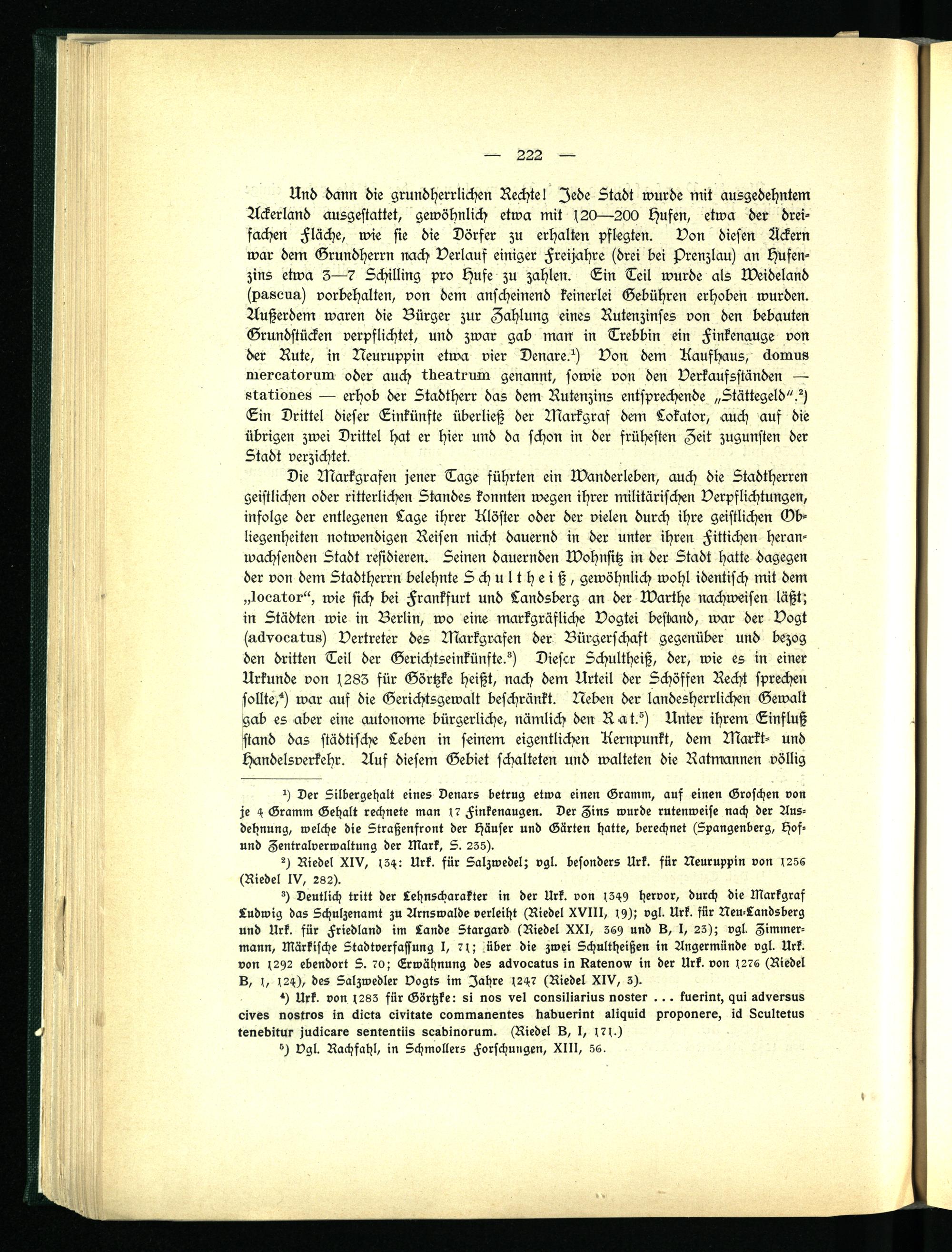 tz Der Silbergehalt eines Denars betrug etwa einen Gramm, auf einen Groschen von je 4 Gramm Gehalt rechnete man 17 Finkenaugen. Der Zins wurde rutenweise nach der Ausdehnung, welche die Straßenfront der Häuser und Gärten hatte, berechnet (Spangenberg, Hof- und Zentralverwaltung der Mark, S. 235).