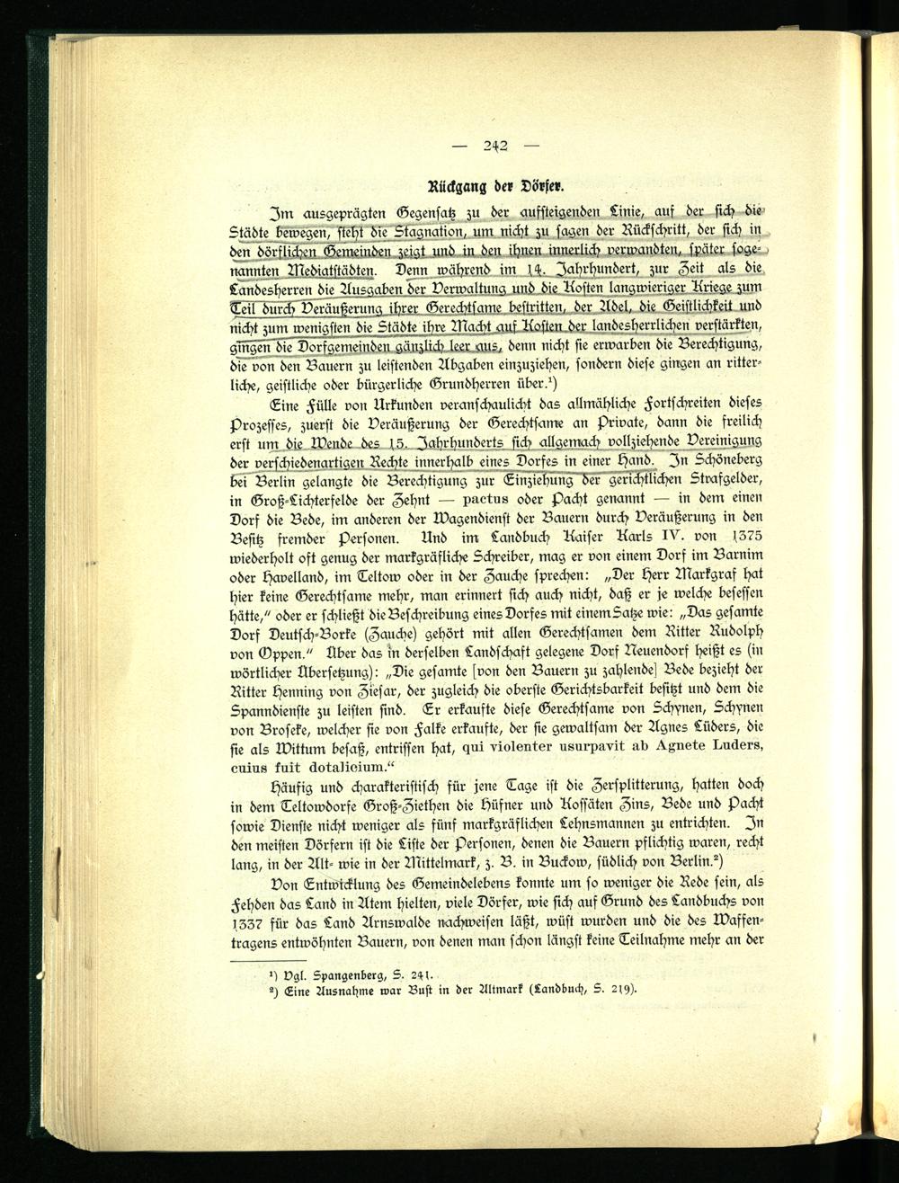 Häufig und charakteristisch für jene Tage ist die Zersplitterung, hatten doch in dem Teltowdorfe Groß-Ziethen die Hüfner und Rossäten Zins, Bede und Pacht sowie Dienste nicht weniger als fünf markgräflichen Lehnsmannen zu entrichten. In den meisten Dörfern ist die Liste der Personen, denen die Bauern pflichtig waren, recht lang, in der Alt- wie in der wittelmark, z. B. in Buckow, südlich von Berlin?)