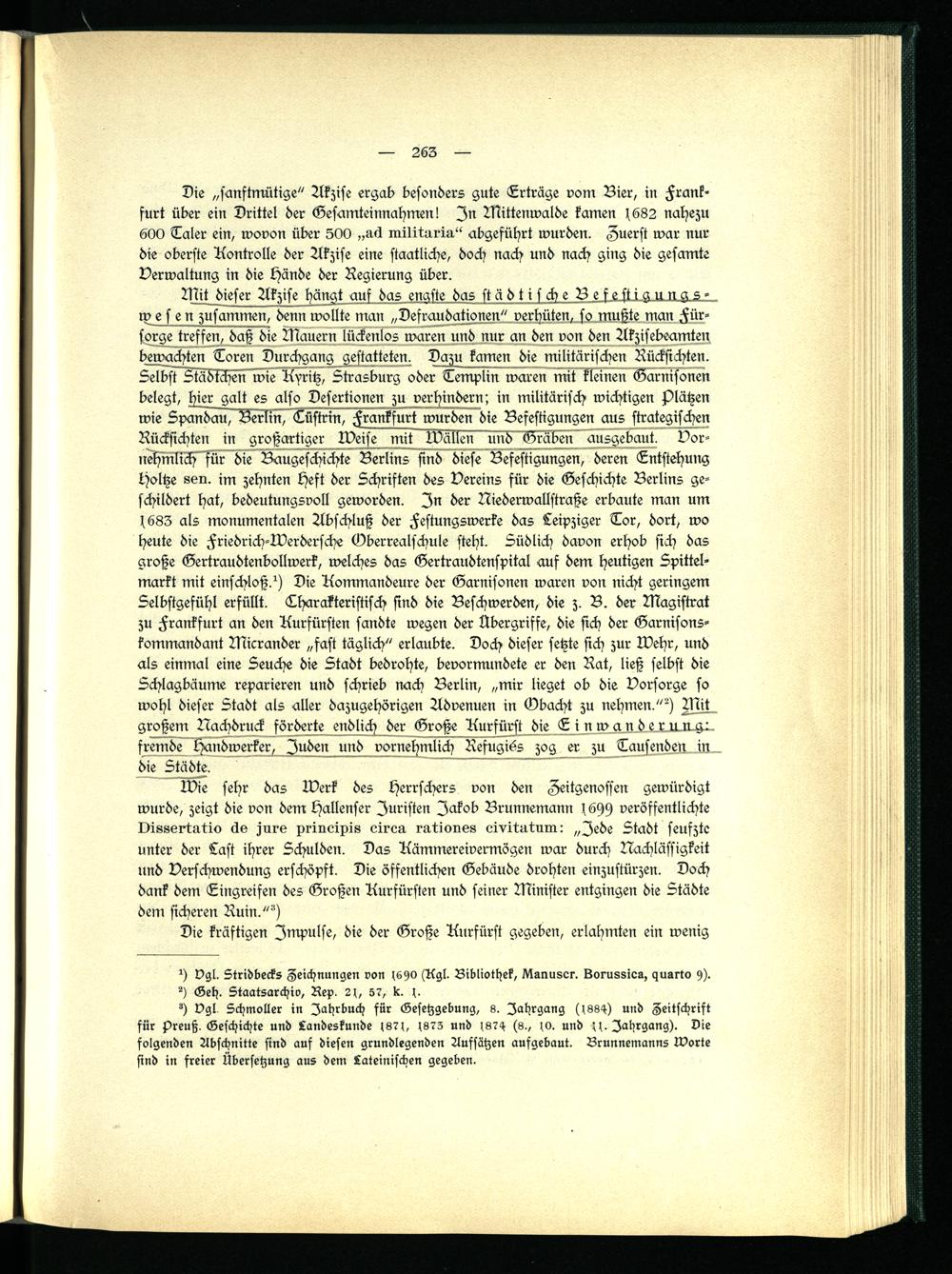 st vgl Schmoller in Jahrbuch für Gesetzgebung, 8. Jahrgang (t88-t) und Zeitschrift für preuß. Geschichte und Landeskunde <87t, t87Z und t87-t (8., t». und tt-Jahrgang), vie folgenden Abschnitte sind auf diesen grundlegenden Aufsätzen ausgebaut. Brunnemanns Worte sind in freier Übersetzung aus dem Lateinischen gegeben.