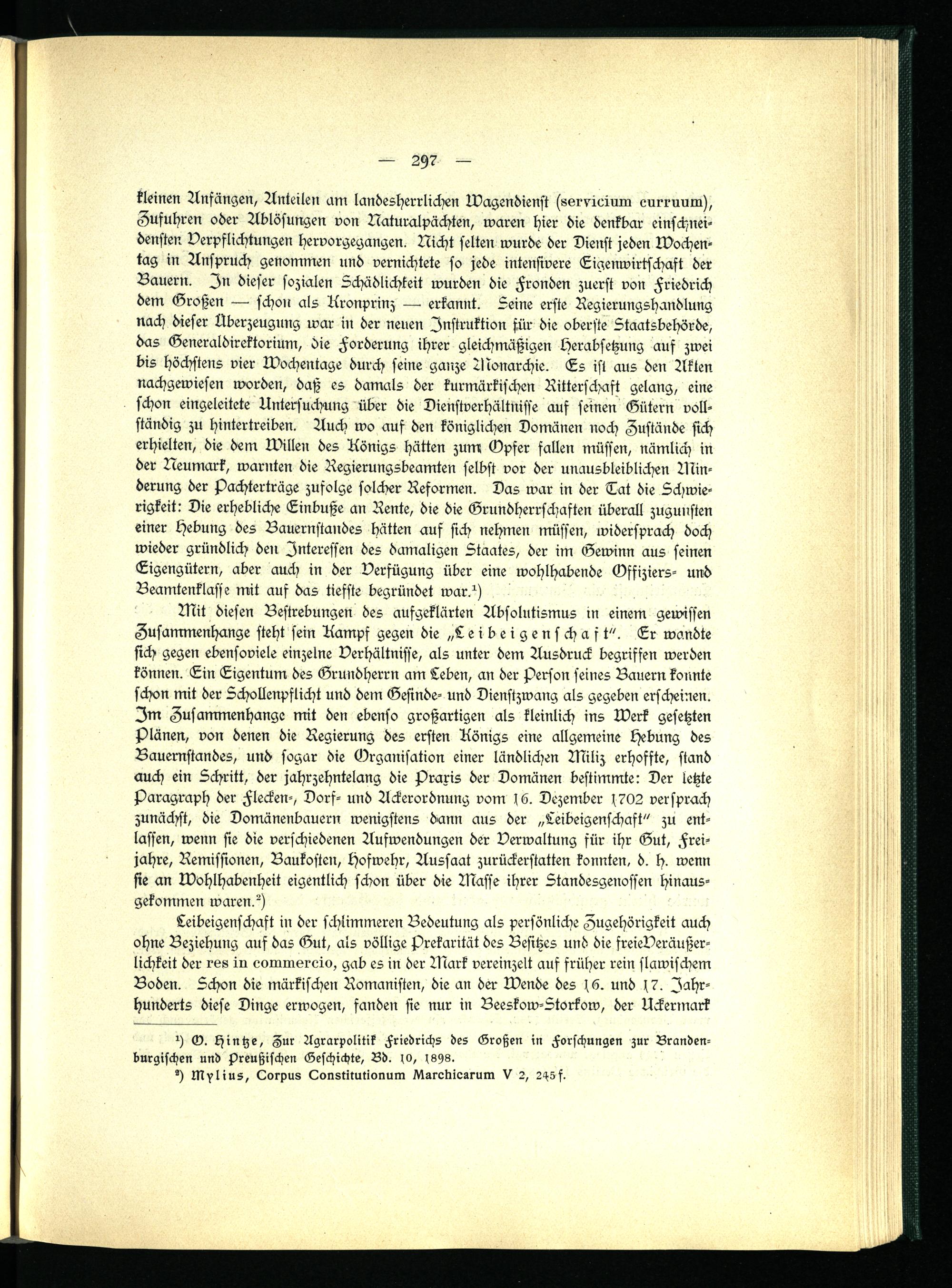 st G. Hintze, Zur Agrarpolitik Friedrichs des Großen in Forschungen zur Branden- burgischen und Preußischen Geschichte, Bd. w, ^8Y8.