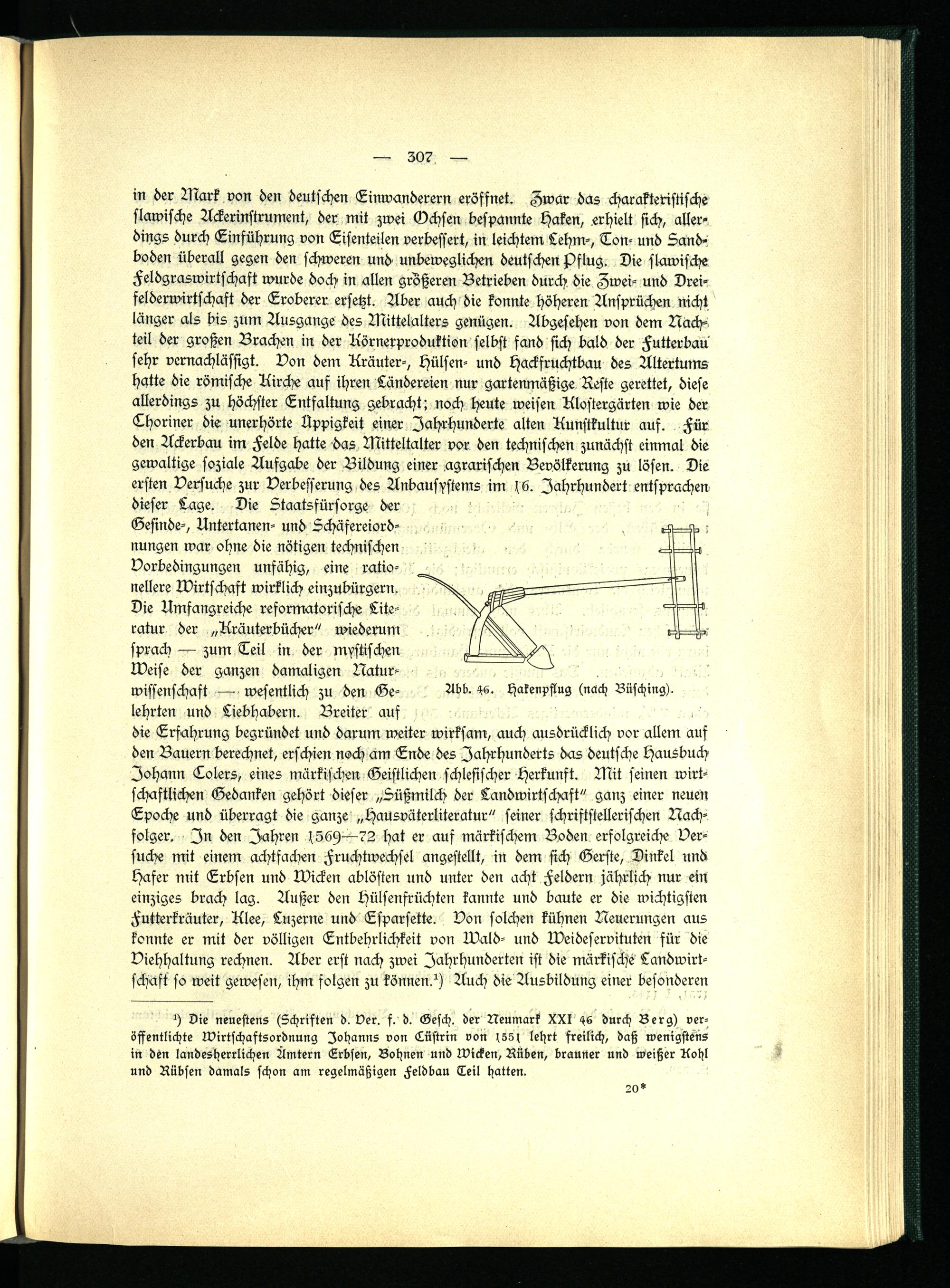 9 Die neuestens (Lchriften d. Der. f. d. <8esch. der Neumark XXI HS durch Berg) veröffentlichte Wirtschaftsordnung Johanns von Lüstrin von lehrt freilich, daß wenigstens in den landesherrlichen Ämtern Erbsen, Bohnen und Wicken, Rüben, brauner und weißer Kohl und Rübsen damals schon am regelmäßigen Feldbau Teil hatten.