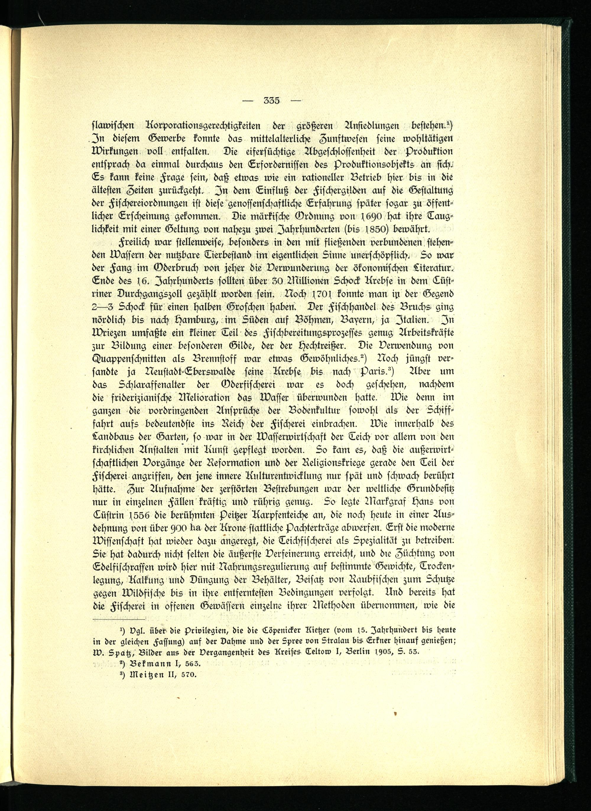 slawischen Aorporationsgerechtigkeiten der größeren Ansiedlungen bestehen?) .Zn diesem Gewerbe konnte das mittelalterliche Zunftwesen seine wohltätigen Wirkungen voll entfalten. Die eifersüchtige Abgeschlossenheit der Produktion entsprach da einmal durchaus den Erfordernissen des Produktionsobjekts än sich. Es kann keine Frage sein, daß etwas wie ein rationeller Betrieb hier bis in die ältesten Zeiten zurückgeht. Zn dem Einfluß der Fischergilden auf die Gestaltung der Fischereiordnungen ist diese genossenschaftliche Erfahrung später sogar zu öffentlicher Erscheinung gekommen. Die märkische Ordnung von f6stO hat ihre Tauglichkeit mit einer Geltung von nahezu zwei Jahrhunderten (bis ( 850 ) bewährt.