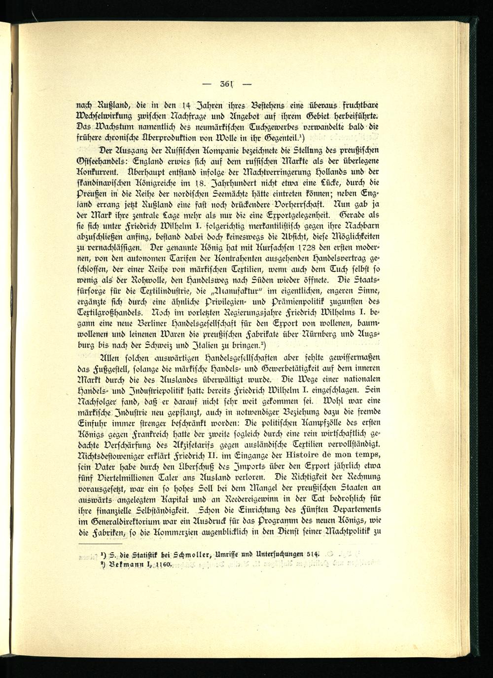 nach Rußland, die in den 1-1 Jahren ihres Bestehens eine überaus fruchtbare Wechselwirkung zwischen Nachfrage und Angebot auf ihrem Gebiet herbeiführte. Das Wachstum namentlich des neumärkischen Tuchgewerbes verwandelte bald die frühere chronische Überproduktion von Wolle in ihr Gegenteil?)