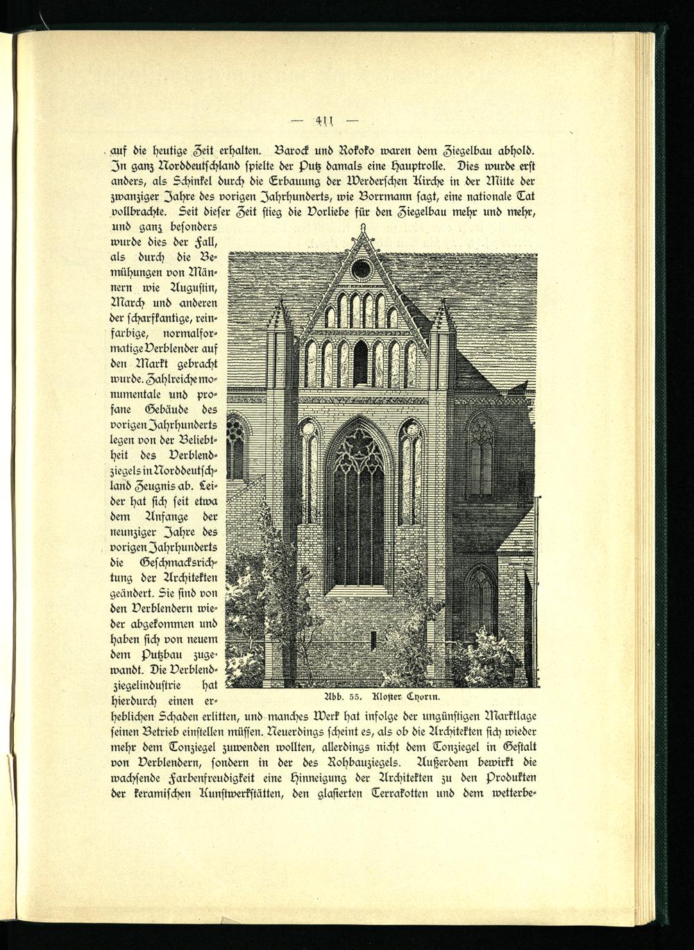 March und anderen der scharfkantige, reinfarbige, normalfor- matige Verblender auf den Markt gebracht wurde. Zahlreiche monumentale und profane Gebäude des vorigen Jahrhunderts legen von der Beliebtheit des Verblendziegels in Norddeutschland Zeugnis ab. Leider hat sich seit etwa dem Anfänge der neunziger Jahre des vorigen Jahrhunderts die Geschmacksrichtung der Architekten geändert. Sie sind von den Verblendern wieder abgekommen und haben sich von neuem dem putzbau zugewandt. Die Verblendziegelindustrie hat hierdurch einen er- ^bb. ss. Ll°,rer L^r.n.