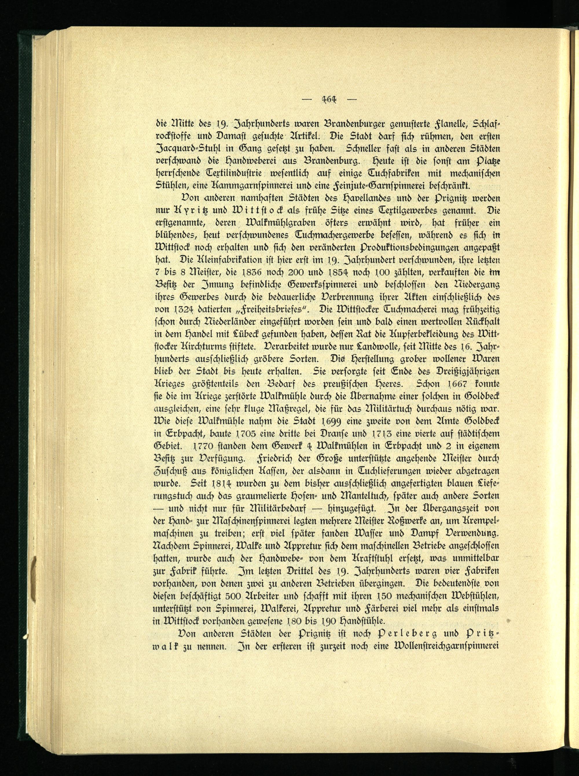 Von anderen Städten der prignitz ist noch perleberg und pritzwalk zu nennen. In der elfteren ist zurzeit noch eine Wollenstreichgarnspinnerei