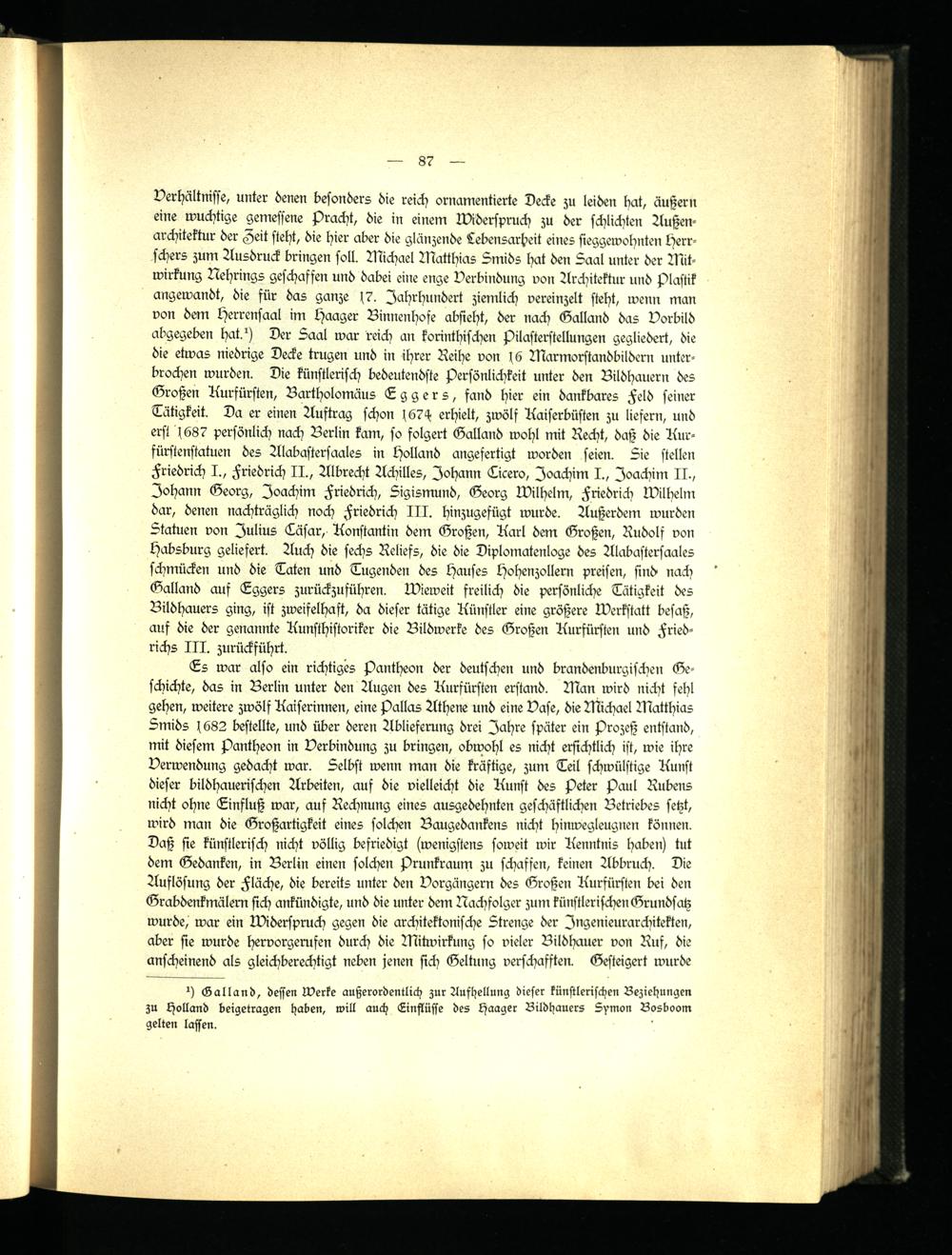 1) Galland, dessen Werke außerordentlich zur Aufhellung dieser künstlerischen Beziehungen zu Holland beigetragen haben, will auch Einflüsse des Haager Bildhauers Symon Bosboom gelten lassen.