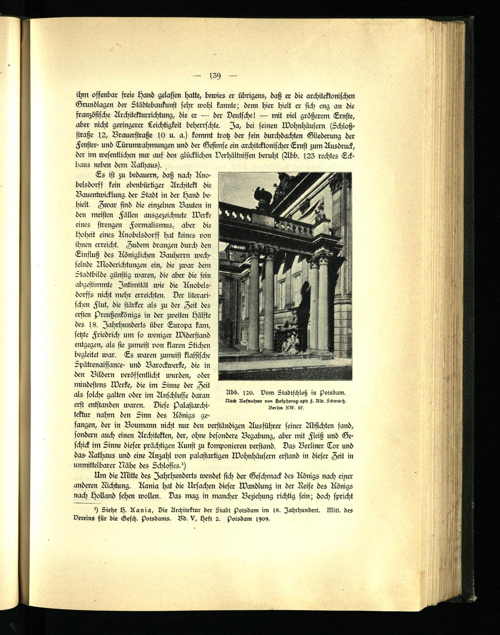 1) Siehe B. Kania, Die Architektur der Stadt Potsdam im 1 8. Jahrhundert. Mit. des Vereins für die Gesch. Potsdams. Bd. V, Heft 2. Potsdam 19 0 9.