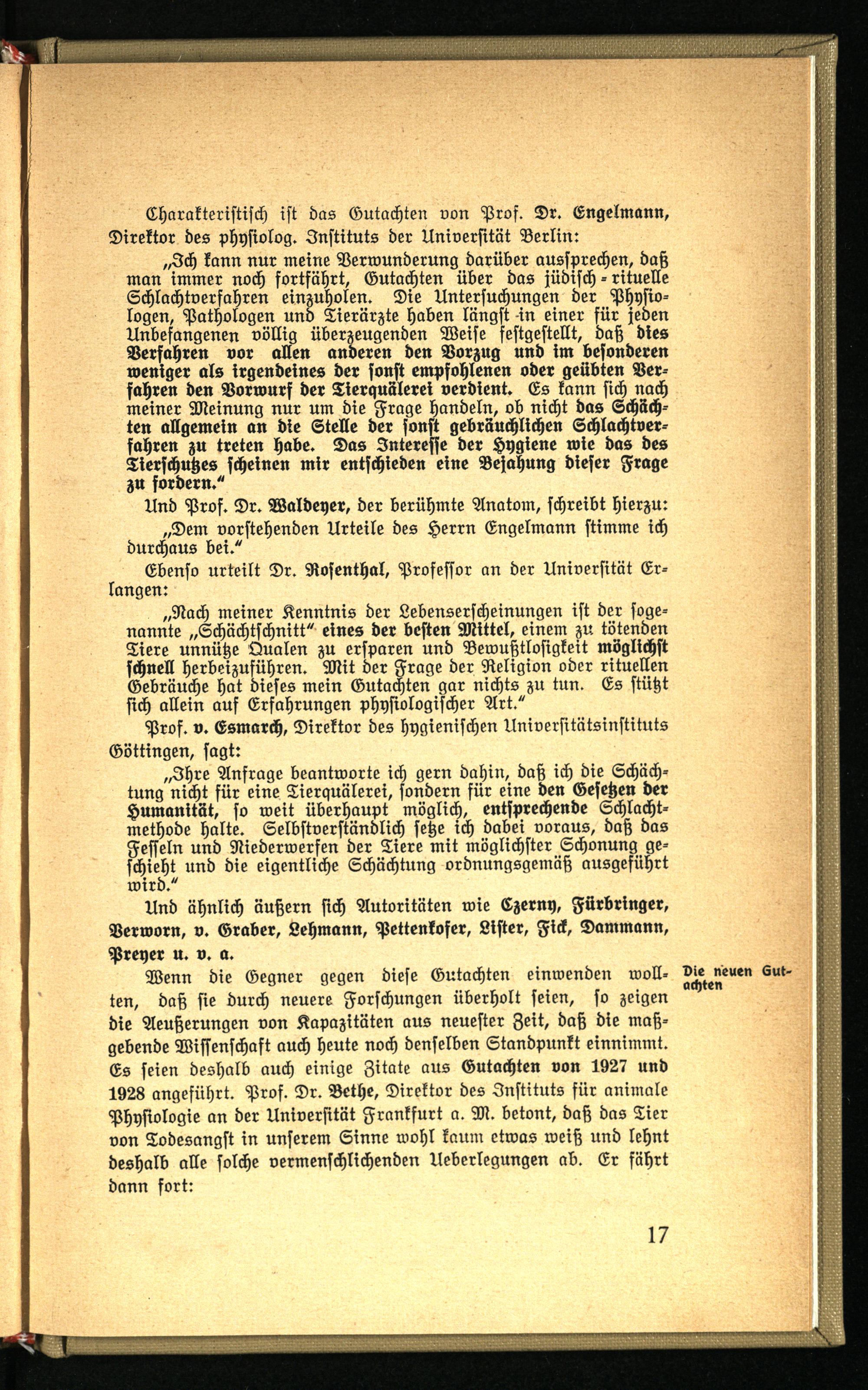 Charakteriſtiſch iſt das Gutachten von Prof. Dr. Engelmann, Direktor des phyſiolog. Inſtituts der Univerſität Berlin: