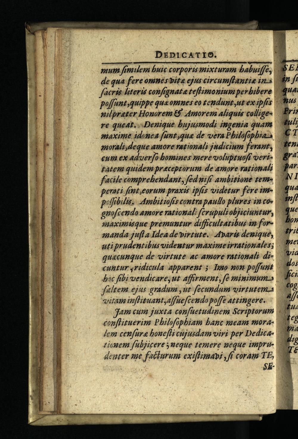 boc fibi uendicarey ut affirment, fe minimum» faltem ejus gradum ,ut fecundum virtutem.s vitam inflituantyaffuefcendopoffe attingere. 1 jam cum juxta confuetudipem Scriptorum copflituerim Philfophiam banc meam moraJem cenfura bonefli cujusdam viri per Dedicationem fubjicere meque temere ueque imprudeater me facturum exiflimabi ff coram TE,