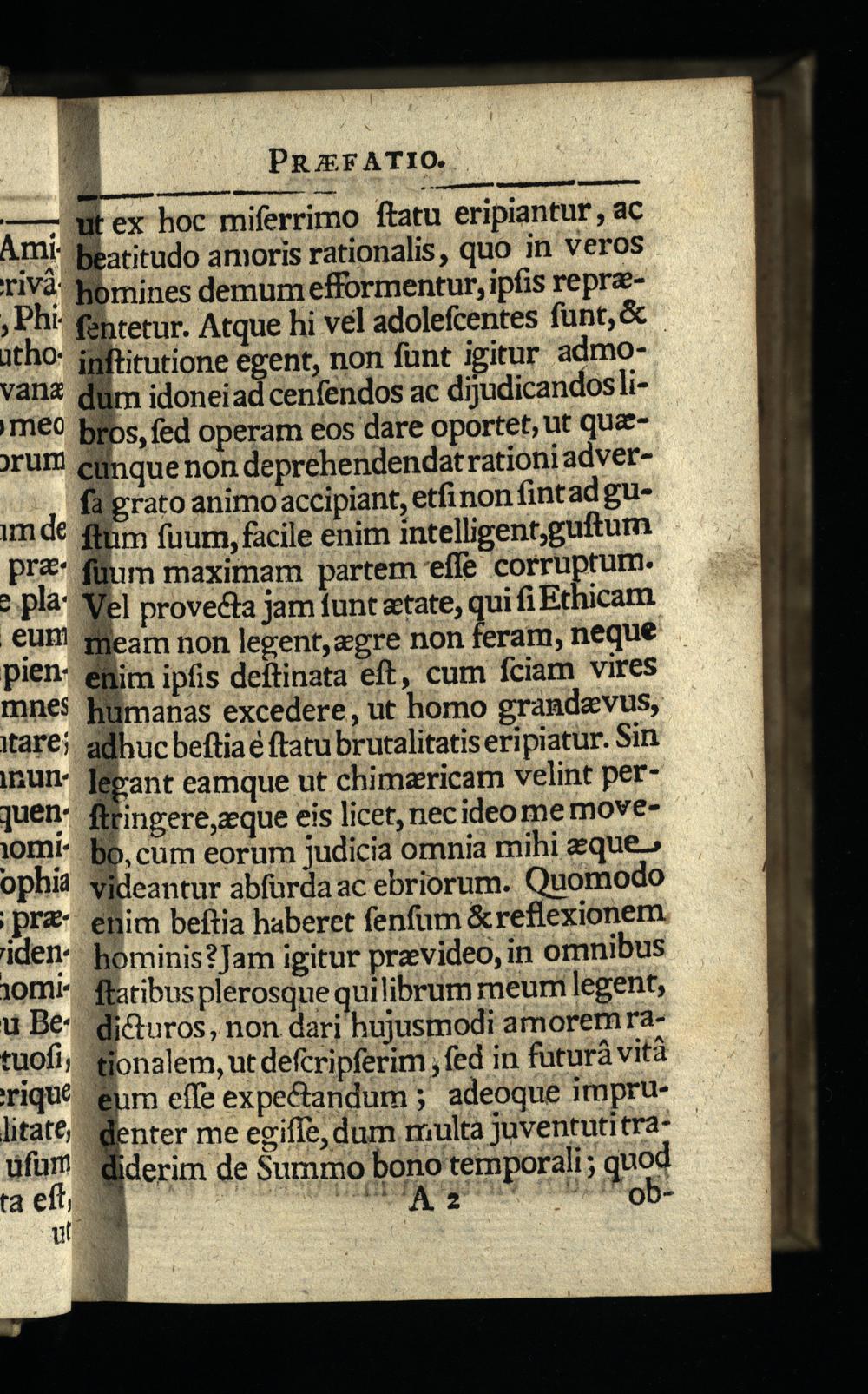 —— Wit ex hoc miferrimo ftatu eripiantur, ac Ami: Beatitudo amoris rationalis, quo in veros riVà: Bornines demum efformentur, ipfis repre; Phi- féntetur. Atque hi vel adolefcentes funt,&' itho- igfritutione egent, non funt igitur admovanz dim idoneiad cenfendos ac dijudicandosllimeo bfbs, fed operam eos dare oportet, ut quarum c que non deprehendendatrationi adverd d grato animo accipiant, etfinon fint adguim c flm fuum, facile enim intelligent,guftum pue lium maximam partem effe corruptum. : plà: Mel prove&ta jam funt atate; qui fi Ethicam €uB! Seam non legent, egre non feram, neque pien: enim ipfis deftinata eft, cum fciam vires mnes anas excedere, ut homo grandavus, tare? adhuc beftiaé ftatu brutalitatis eripitur. Sin nun nt eamque ut chimaricam velint perquen: fltingere,zque eis licet, necideo me moveiomi- Bo, cum eorum judicia omnia mihi eque ophia lideantur abfürdaac ebriorum. Quomodo wi enim beftia haberet fenfum& reflexionem. iden: hominis?Jam igitur pravideo, in omnibus omi flatibus plerosque quilibrum meum legent; une di&uros, non dari hujusmodi amorem ra* j