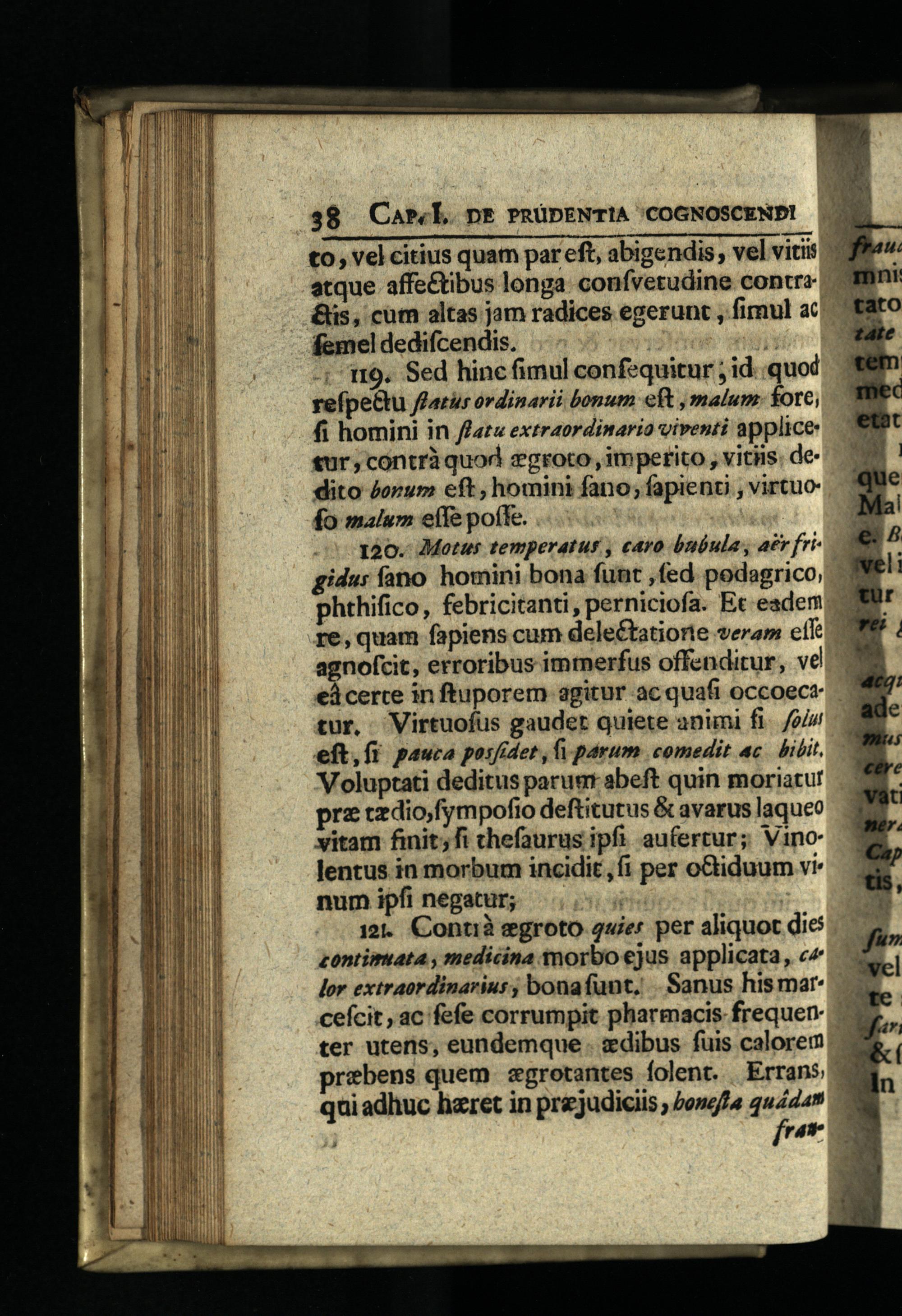 120. Motus temperatus, cayo bnóula, aer fr gidu: fano homini bona funt ,fed podagrico, phthifico, febricitanti, perniciofa. Et eadem re, quam fapiens cum delectatiorte veram eff agnofcit, erroribus imtnerfus offenditur, vel edcerce in ftuporem agitur ac quafi occoeca tur, Virtuofus gaudet quiete animi fi. /o/v/ eft,fi. pauca posfidet, i parum comedit ac. bibit, Voluptati deditus parue abeft quin moriatur pr tzdio,fympofio deftitutus& avarus laqueo vitam finit;fi thefaurus ipfi aufertur; Vino lentus in morbum incidit,(i per o&tiduum v; num ipfi negatur;