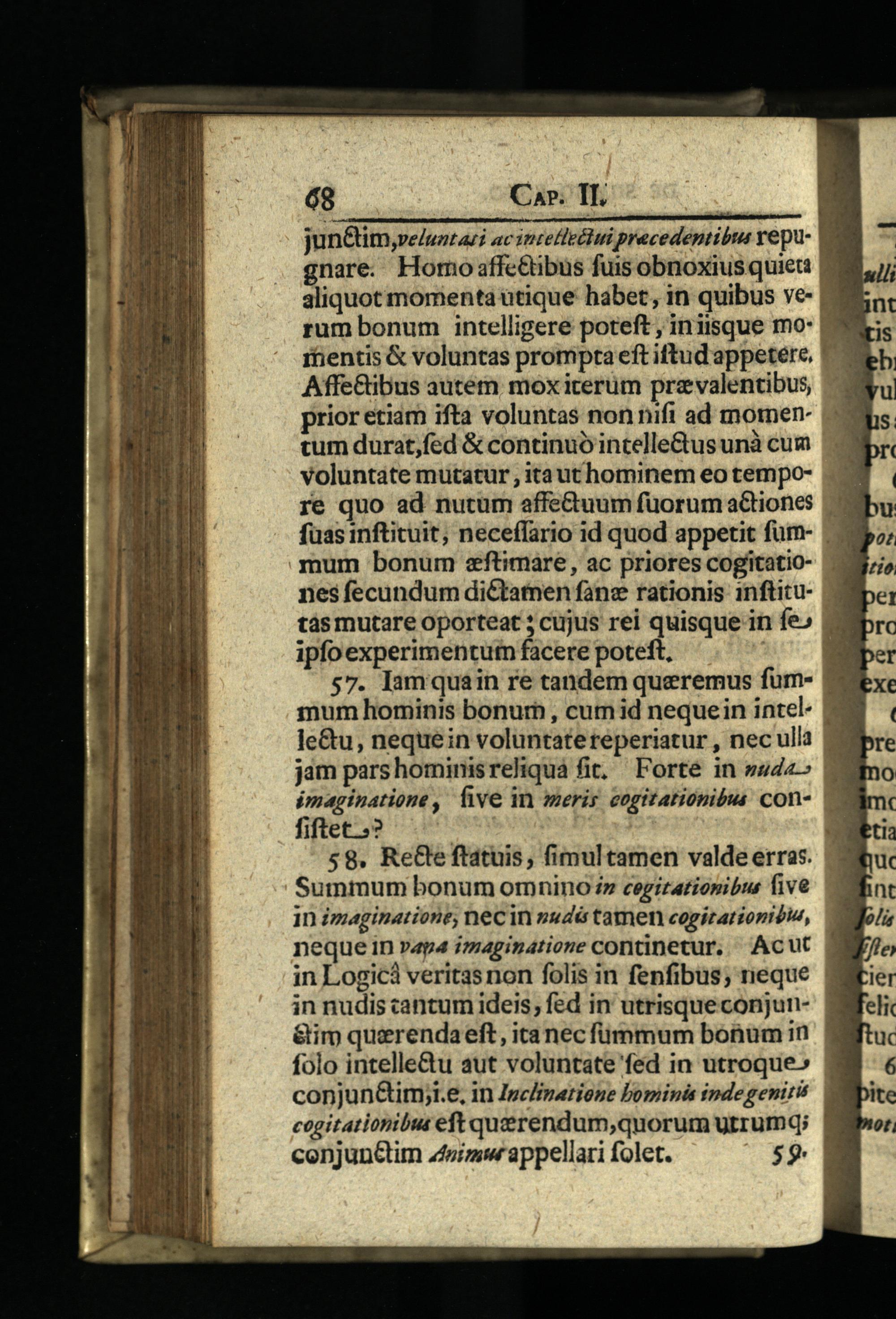 $8. ReGe ftatuis, fimul tamen valde erras. Summum bonum ornino z cegitatiopibus five 1n imaginatione, necin»udá tamen cogirationibu, neque in»ap4 izmaginatione continetur, Acut o in Logicà veritas non folis in fenfibus, neque à in nudis cantum ideis; fed in' utrisqueconjun- 1 &im querendaeft, itanecfümmum bonumin d folo intelle&u aut voluntate fed in utroque» conjunGim;i.e, in Ipc/inatione bominis inde genitis cogitationibus eft querendum,quorum Uurrumq; E conjun&tim Zjimw appellari folet. 59. f