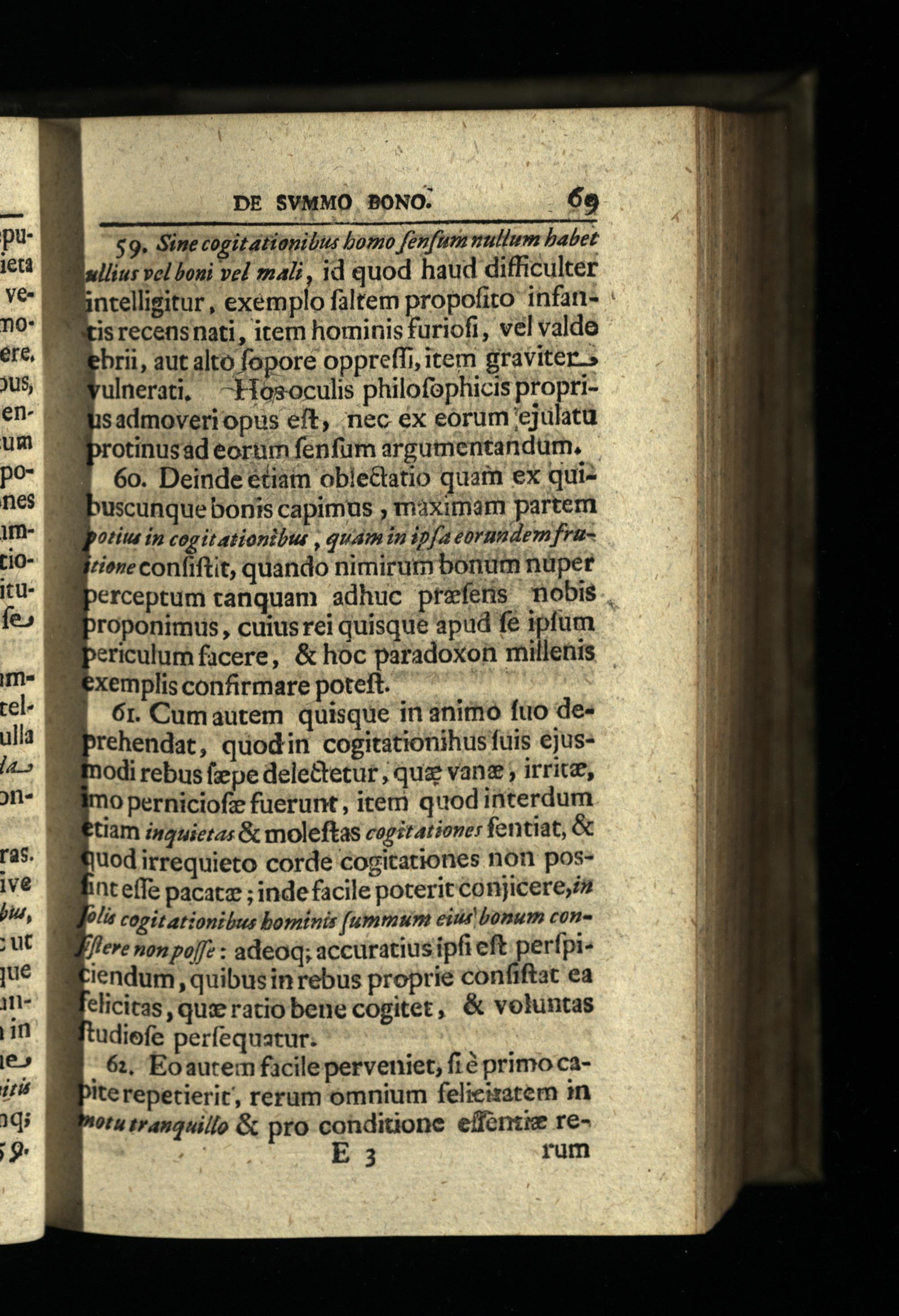 IExernplis confirmare poteft. TIT 6r. Cumautem quisque in animo fuo de« brehendat, quodin cogitationihus fuis ejusodi rebus fepe dele&etur; quz vane; irritee, 10 perniciofz fuerunt, item quod interdum tram izauietas& moleftas cogitationes fentiat,& Ei'uodirrequieto corde cogitationes non posBhnteffe pacatz; inde facile poterit conjicere,» Moli cogitationibus bominis[ummum eius bonum conleve non pof?: adeoq; accuratius ipfi eft perfpi« iendum, quibusin rebus proprie confiftat ea elicitas quxratiobene cogitet,& voluntas udiefe perfequatur.