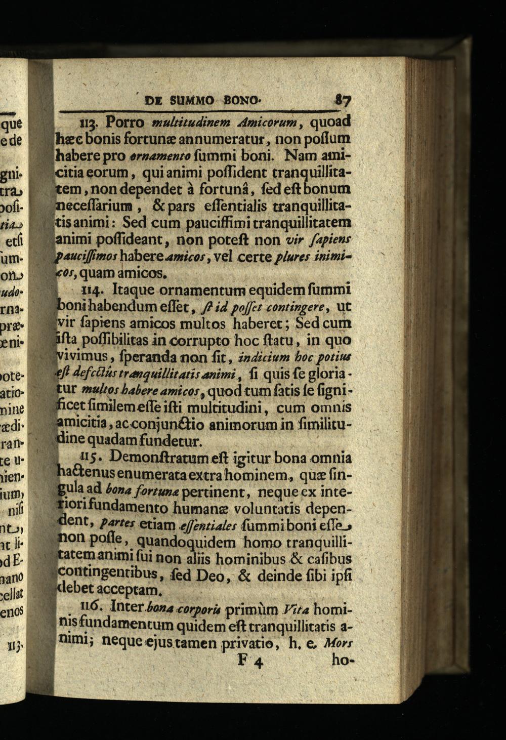 que|| a3 Porro multitudinem Amicorum, quoad ede hec bonis fortunz annumeratur, non poffum X habere pro erzemenzo fummi boni. Nam amigni citia eorum, quianimi poffident tranquillitaLr» tem, non dependet à fortuná, fed eftbonum xofi- E-sneceffarium,& pars effentialis tranquillitati» Lo tisanimi: Sed cum pauciffimi tranquillitatem eti animi poffideant ,, non poteft non vir /apiens um- PaucilFmos habere.amicos, vel certe plures inimion» 19^, quam amicos. udo-| 114. Itaque ornamentum equidem fummi