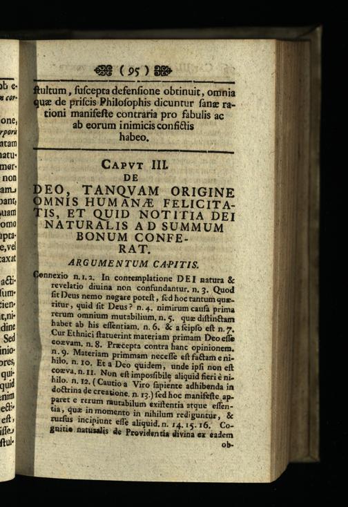 CaA»vr IIL : a.DE DEO, TANQVAM ORIGIN MNIS HUMANZE FELICIT AIS, ET QUID NOTITIA DEI NATURALIS AD SUMMUM BONUM CONFERAT.