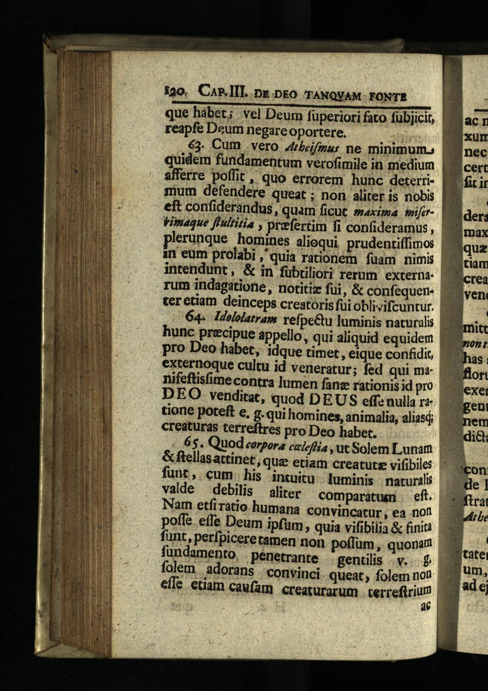 65. Quod corpora ceiefis ut Solem Lunam &ftellasattinet, quz etiam creatutz vifibiles funt, cum. his intuitu luminis naturis valde debilis aliter comparatum. eft. Nam etfiratio humana convincatur, ea nof poffe. effe Deum ipfum, quia vifibilia& finiti.— funt, perfpiceretamen non poífüm, quonam fundamento,. penetrante genulis v.£L folem adorans:convinci queat folem non effe etiam caufam creaturarum teriefirim|