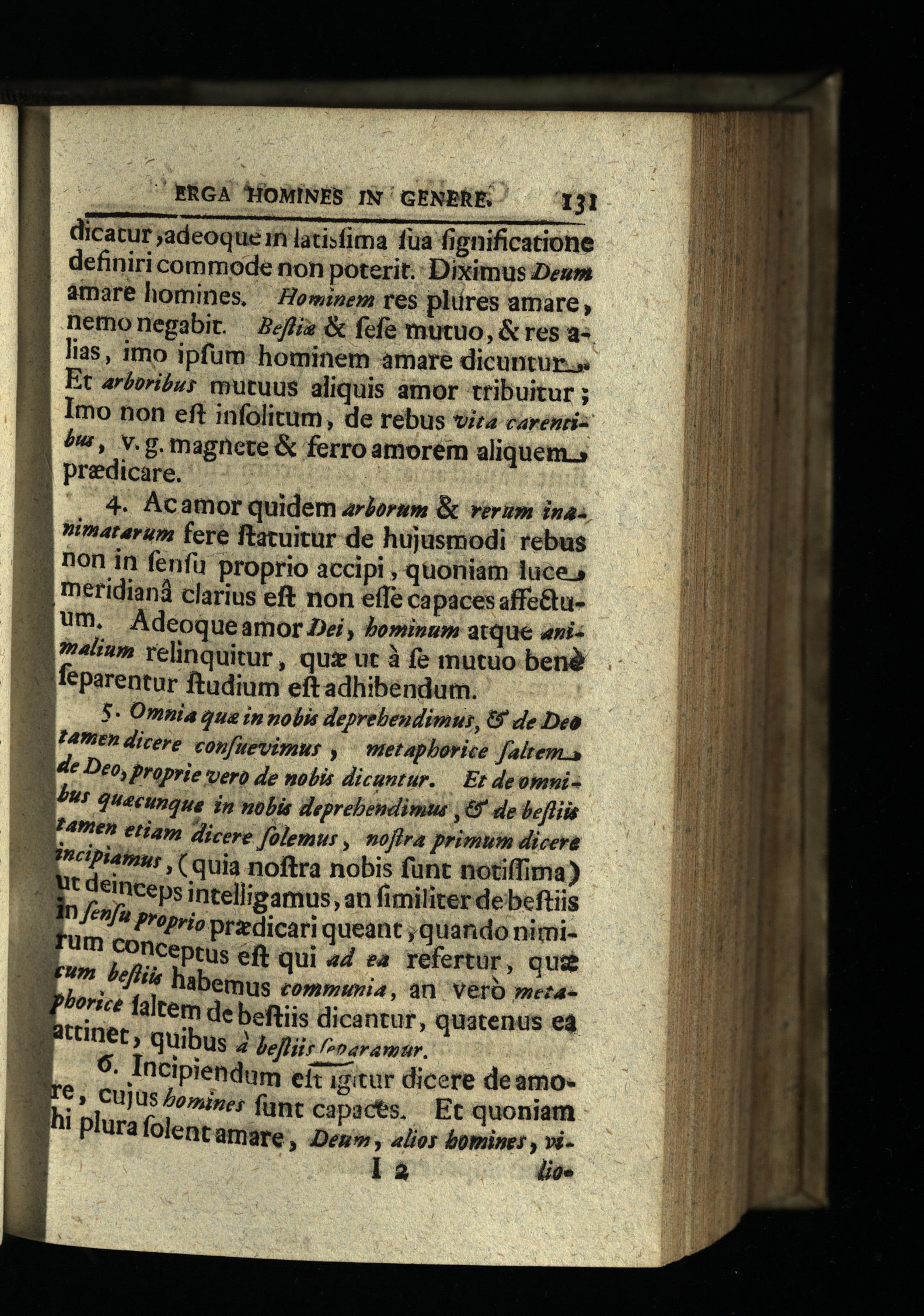 . BRGA MOMINES IN'GENBRE.— q31 dicatur;adeoque in latisfima fua fignificatione definiri commode non poterit. Diximus Deum amare homines,— Hominem res plüres amare, nemonegabit. 2efiz& fefe mutuo,& resa lias, imo ipfum hominem amare dicuntur... Et arboribus mutuus aliquis amor tribuitur; Imo non eft infolitum, de rebus vira carenri: P, v.g. magnete& ferro amorem aliquem.» predicare.