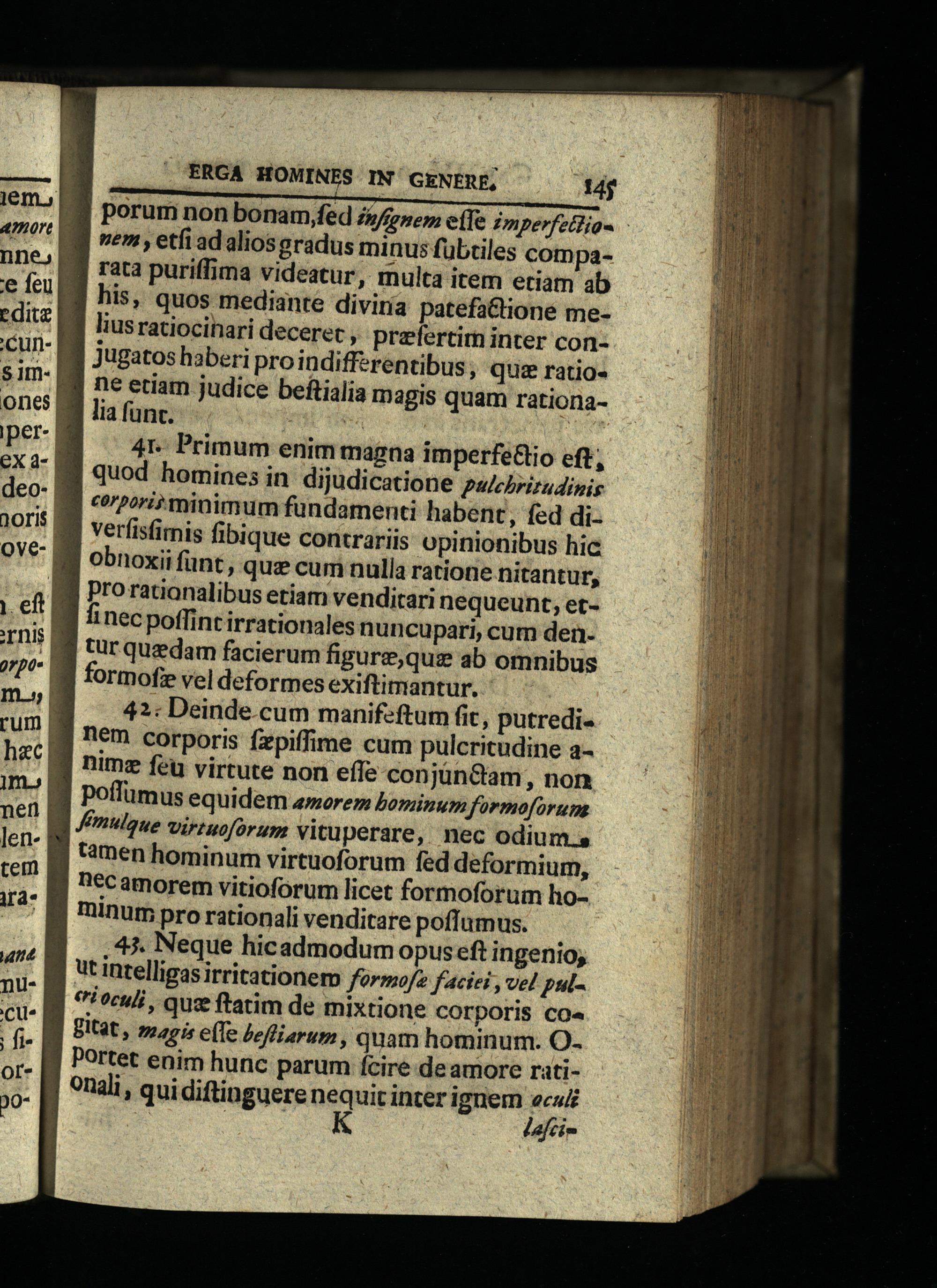 42: Deinde cum manifeftum(it, putredinem corporis fzpiffime cum pulcritudine animz fet virtute non effe conjünGam, non poffümus equidem amore borinum formoforum Kmulgue virtuoforum vituperare, nec odium.s tamen hominum virtuoforum fed deformium, Decamorem vitioforum licet formoforum lo-minum pro rationali venditare poffumus.