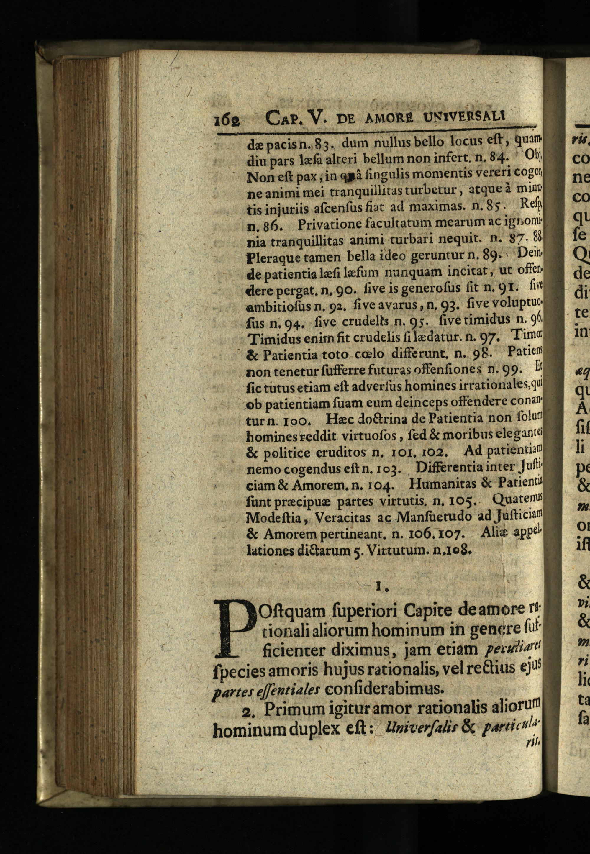 & politice eruditos n, 10r, 102. Ad patienti" M nemo cogenduseftn.103. Differentia inter JuftiE ciam& Amorem. n. 104. Humanitas& Patient funt precipue partes virtutis, n, 105... Quatens i . Modeftia ,. Veracitas ac Manfüetudo ad jufticisl & Amorem pertineant, n. 106,107. Aliz appel lationes dictarum 5. Virtutum. n.108. 1