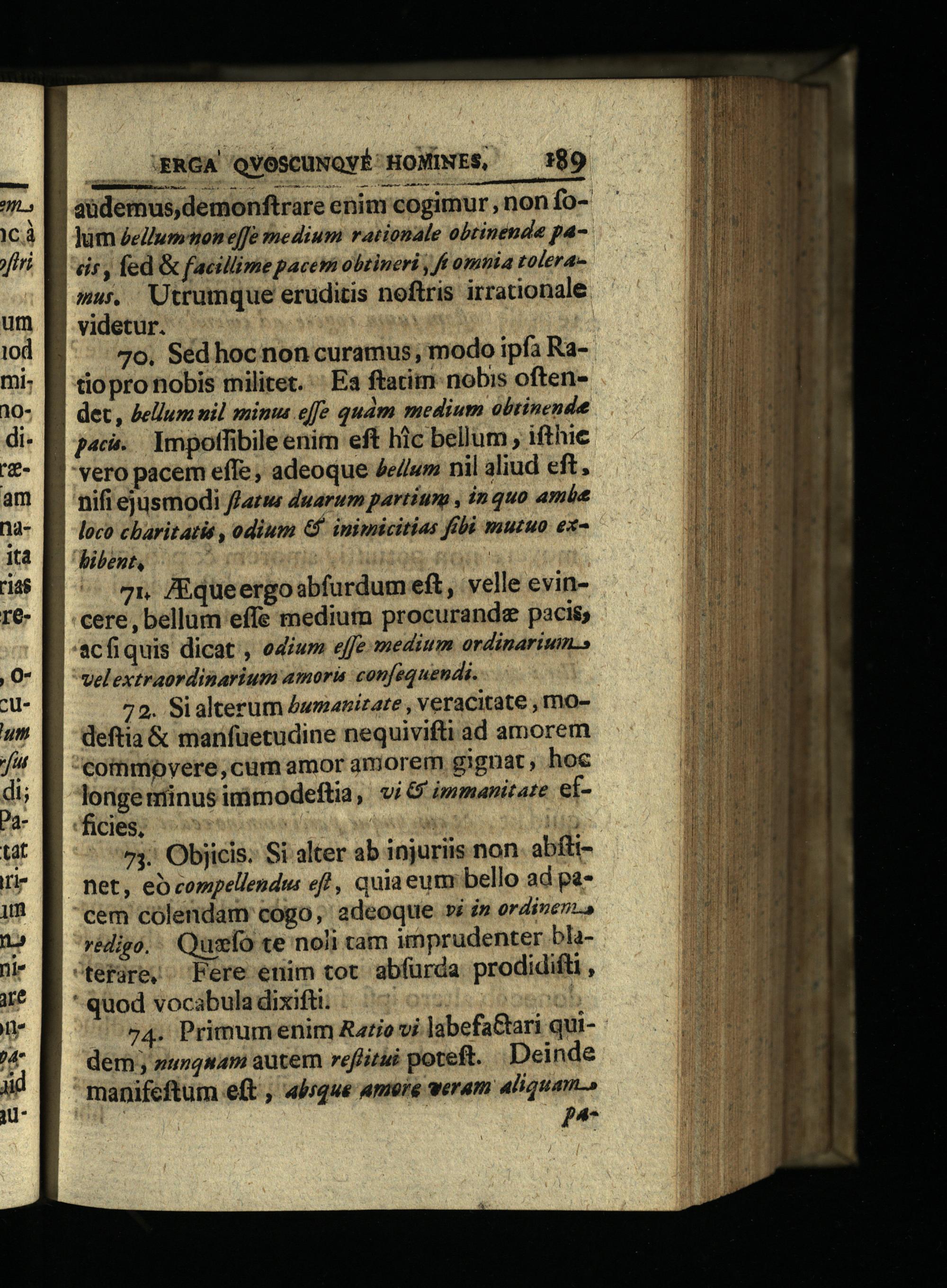 73. Objicis. Si alter ab injuriis non. abftinet, eo compellendus ef, quia eum bello ad pacem cólendam cogo, adeoque»i in ordivezi, redigo.: Qusefo te noli tam imprudenter bla