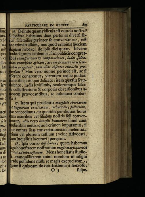 16. Deinde quam ridicula eft cautela noftra? ufpe&tas habemus duas perfonas diverfi feus, fi familiariterinter fe converfancur, etfi eccrimen ullum, nec quod criminis fpeciem iquam habeat, de ipfis diciqueat. Idvero üde dignum cenfemus, fiin publicis congresbus comej[ationes& comporationes, ludos,[altas ones promifcue agitant, ac cum fe mutuo jocis faw