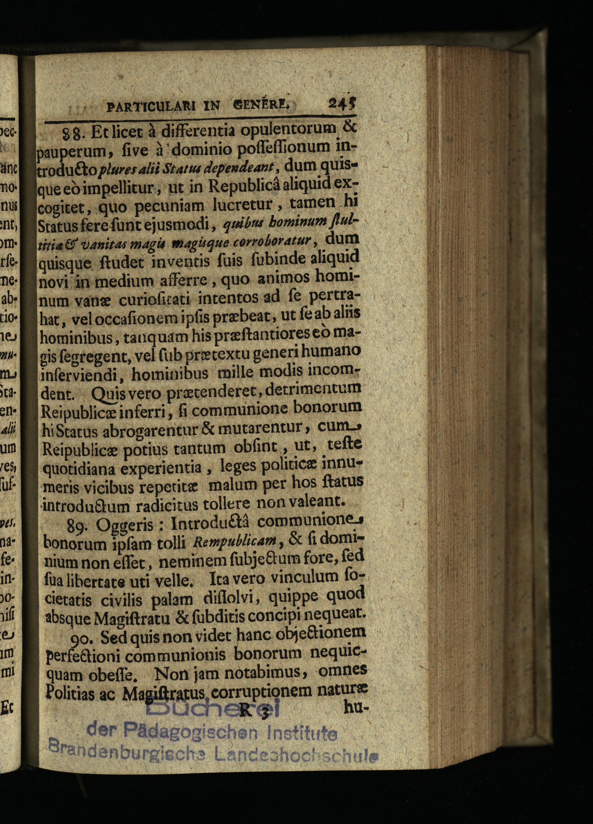 m rdbnahibarolisai uM d $8. Et licet à differentia opulentorum& pauperum, five à dominio poffzffionum inBtrodu&to plures alii Status dependeant, dum quisqueeo impellitur, ut in Republicà aliquid excogitet, quo pecuniam lucretur, tamen hi Status fere funt ejusmodi, quibm bominum ftultitia] Vanitas magis magisque corroboratur, dum quisque ftudet inventis fuis fubinde aliquid novi in medium afferre, quo animos hominum vane curiofirati intentos ad fe pertrahat, veloccafionem ipfis prbeat, ut feab aliis hominibus, tauquám his praftantioreseó magis fegregent, vel(ub precextu generi humano inferviendi, hominibus tnille modis incomdent. Quisvero przxenderet, detrimentum Reipublice inferri, fi communione bonorum hiStatus abrogarentur& mutarentur, cum-» Reipublice potius tantum obfint, ut, tefte quotidiana experientia, leges politicz innus meris vicibus repetie malum per hos ftatus introdu&um radicitus tollere non valeant. 89. Oggeris; Introductà communione.» bonorum ipfam tolli Rempublicam,& fi dominium non effec, neminem fübje&um fore, fed fua libertate uti velle, Ita vero vinculum fodetatis civilis palam diflolvi, quippe quod absque Magiftratu& fubditis concipi nequeat. 9o. Sed quis non videt hanc obje&ionem Perfe&ioni communionis bonorum nequicquam obeffe, Non jam notabimus, omnes Politias ac Magifüratus corruptionem naturse OUcneksl