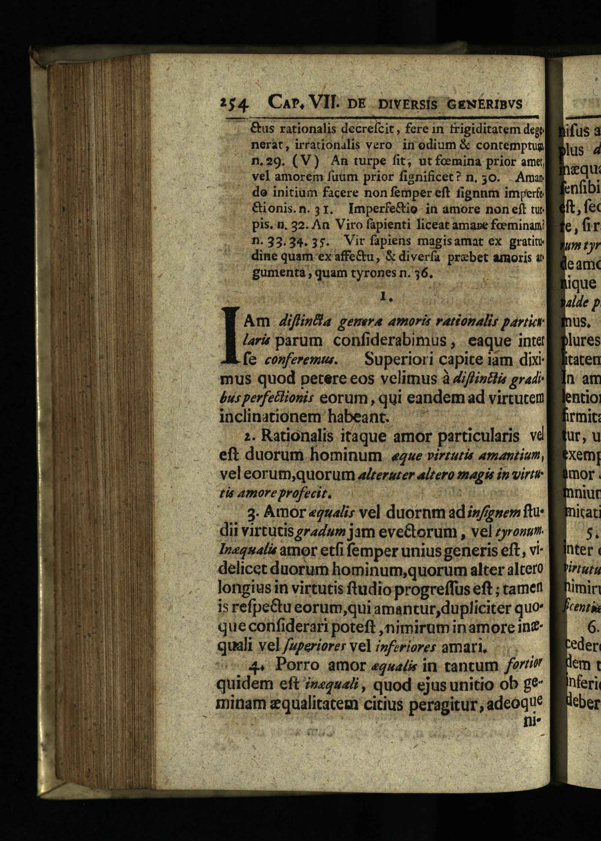 &us rationalis decreícit, fere iri frigiditatem dege nerat, irrationalis vero. in odium& contemptun n,29.(V) An turpe fit; ut foemina prior ame, vel amorem fuum prior fisnificet? n, 30. Ama do initium facere non femper eft fignnm imperf &ionis.n. 31. Imperfe&io in amore non eft tu pis.'n. 32. An Viro fapienti liceat amase foeminani n.33.24.35."Vir fapiens magisamat ex gratin dine quam ex affe&u,& diverfa probet amoris« gumenta quam tyrones n. 36.