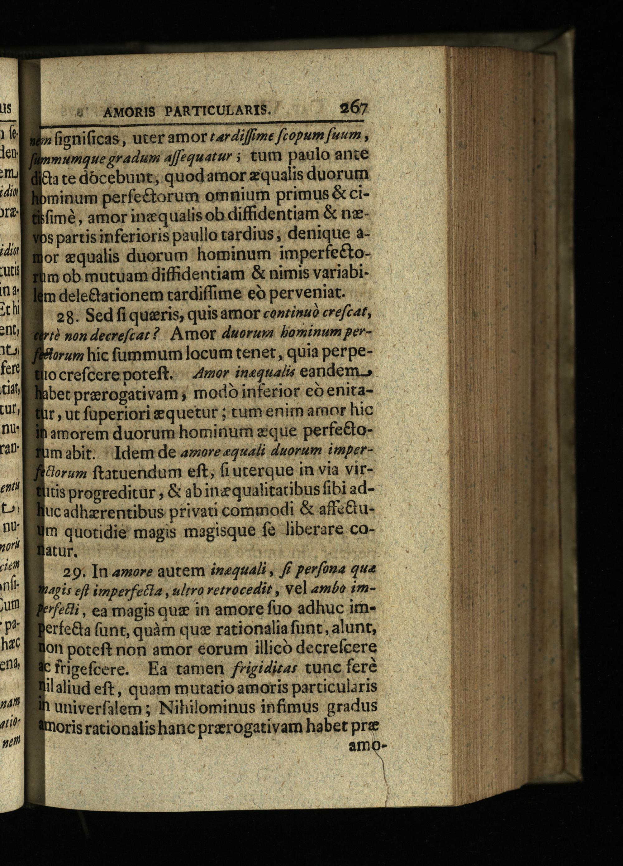 29. In amore autem inequali, ff perfona qua. bapis eft imperfetla, ultra retrocedit, vel ambo im"felli, ea magis qute in amore fuo adhuc imerfeGa(unt, quàm quz rationdlia funt, alunt, 0n poteft non amor eorum illico decrefcere Cfngefcere. Ea tamen frigidizas cunc feré llaliud eft, quam mutatio amoris particularis