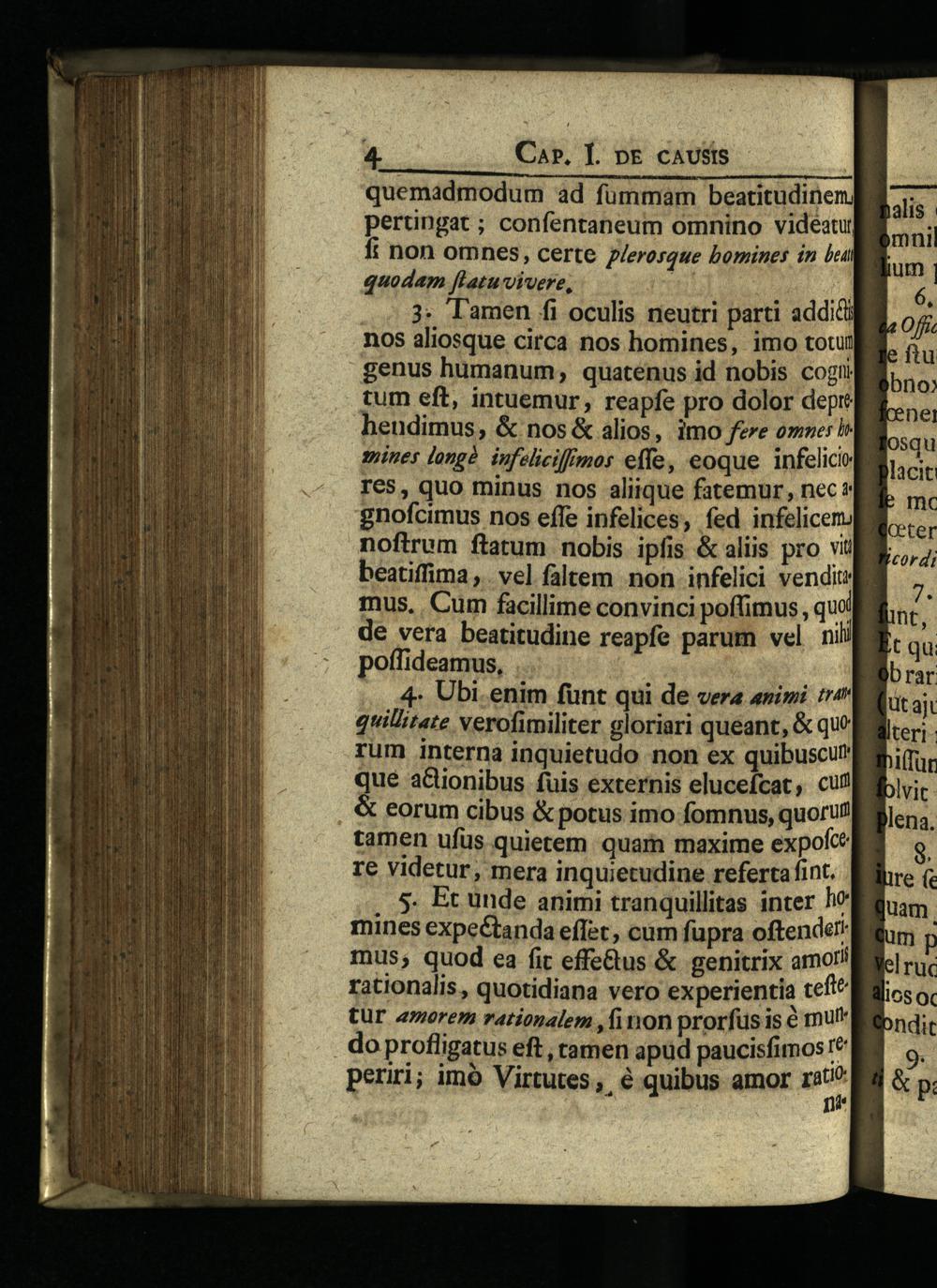 quemadmodum ad fummam beatitudinem, pertingat; confentaneum omnino videatu fi non omnes, certe z/erosque bomines in bea quodam flatuvivere, se i ... 3; Tamen fi oculis neutri parti addiéi nos aliosque circa nos homines, imo totu genus humanum, quatenus id nobis cogi tum eft, intuemur, reapfe pro dolor depre heudimus,& nos& alios, imo fere omnes h sines longà. infelicif/mos effe, eoque infelici rTe5, quo minus nos aliique fatemur, nec gnofcimus nos effe infelices, fed infelicem: noftrum ftatum nobis ipfis& aliis pro vii beatiffima,. vel faltem mon infelici vendit: mus, Cum facillime convinci poffimus, qui de vera beatitudine reapfe parum vel ni poffideamus,