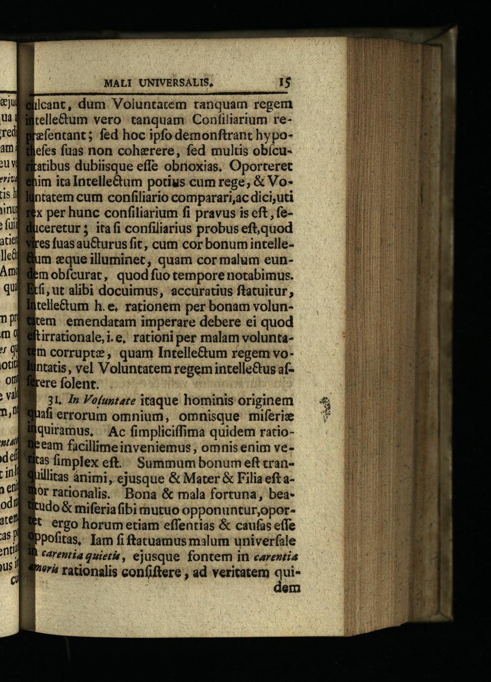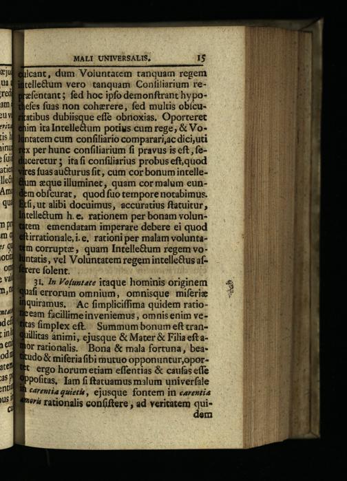 ere folent. 3L. Ip Voluptate iraque hominis originem (flerrorum omnium, omnisque miferie qurramus,| Ac fimpliciffima quidem ratio:eam facillime inveniemus, omnis enim ve35 fimplex eft. Summum bonum eft tranüllitas. ánimi, ejusque& Mater& Filia eft aorrationalis. Bona& mala fortuna, beaudo& miferiafibi mutuo opponuntur,oport ergo horum etiam effentias& caufas effe PPofitas, Iam fi ftatuamus malum univerfale carentia quieta, ejusque fontem in carentia *rá rationalis confiftere, ad veritatem qe em