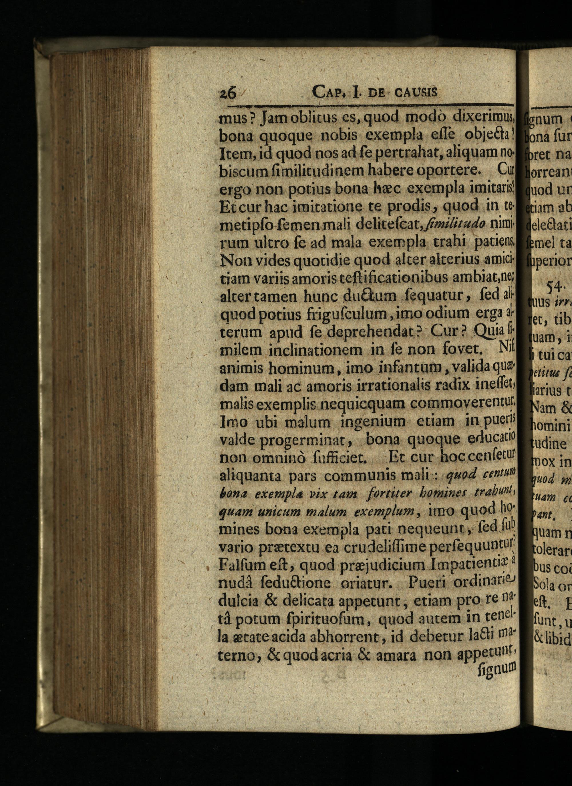 n-——————P ma mus? Jamoblitus es, quod modo dixerimus, bona quoque nobis exempla effe objed! Item, id quod nos ad fe pertrahat, aliquam no biscum fimilitudinem habere oportere.| Cu ergo non potius bona hec exempla imitari Etcur hac imitatione te prodis, quod in te metipfo femen mali delite(cat, /£miizudo nini rum ultro fe ad mala exempla. trahi. patiens Non vides quotidie quod alter alterius amic: tiam variis amoris teftificationibus ambiat,ne altertamen hunc du&um.fequatur, fed ài quod potius frigufculum ,imo odium erg: 4 terum apud fe deprehendat?- Cur? Qui f milem inclinationem in fe non fovet, Ni animis hominum, imo infantum, valida que dam mali ac amoris irrationalis radix ineffei malis exemplis nequicquam commoyverentu. Imo ubi malum ingenium. etiam in pueri valde progerminat, bona quoque educit? non omnino fufüciet, Et cur hoc cenfeur aliquanta pars communis mali: qwoZ centi bona. exempla vix tam| fortiter. bomines trabunt, quam unicum malum exemplum, Àmo quod hv mines bona exempla pati nequeunt, fed fi! vario pretextu ea crudeliffime perfequuntu' Falfum eft, quod prejudicium Impacientiz! nudà fedu&tione oriatur.. Pueri ordinari dulcia& delicata appetunt, etiam pro re n^ td potum fpirituofüm, quod autem in tend" la etate acida abhorrent, id debetur laGti n*