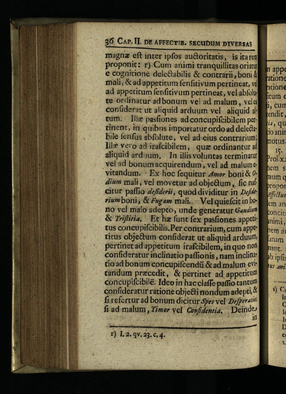 magnz eft inter ipfos au&oritatis, is itarem proponit: r).Cum animi tranquillitas oriatu e cognitione delectabilis& contrarii, boni& mali,&ad appetitum fenfitivum pertineat, vd ad appetitum fenfitivum pertineat, vel abíol te ordinatur ad bonum vel ad malum, vela confiderac ut aliquid arduum vel- aliquid 4: tum. llle pasfiones adconcupifcibilem per tinent, in quibns imporcatur ordo ad deled bile fenfus abfolute, vel ad:eius contrarium; lile vero ad irafcibilem,| quz ordinantur«i aliquid arduum,| In illis voluntas terminaur vel ad bonumacquirendum, vel ad malume vitandum.* Ex hoc fequitur /4mer boni& dium mali; vel movetur ad obje&um, fic náf citur paffio Zz/fderii, quod dividitur in Def riumboni,& Fugam mali..- Vel quiefcic in bono vel malo adepto, unde generatur Gaudi & Trifliria, Et hz funt fex pasfiones appeti tus concupifcibilis.Per contrarium, cum appe titus obje&um confiderat ut aliquid arduum pertinet ad appetitum irafcibilem, in quo not confideratur inclinatio paffionis, nam inclin:' tio ad bonum concupifcendü& ad malum e"* cinidum precedit,& pertinet ad appetitu concupifcibile. Ideo in hacclaffe paffio tantur confideratur ratione obje&li nondum adepti