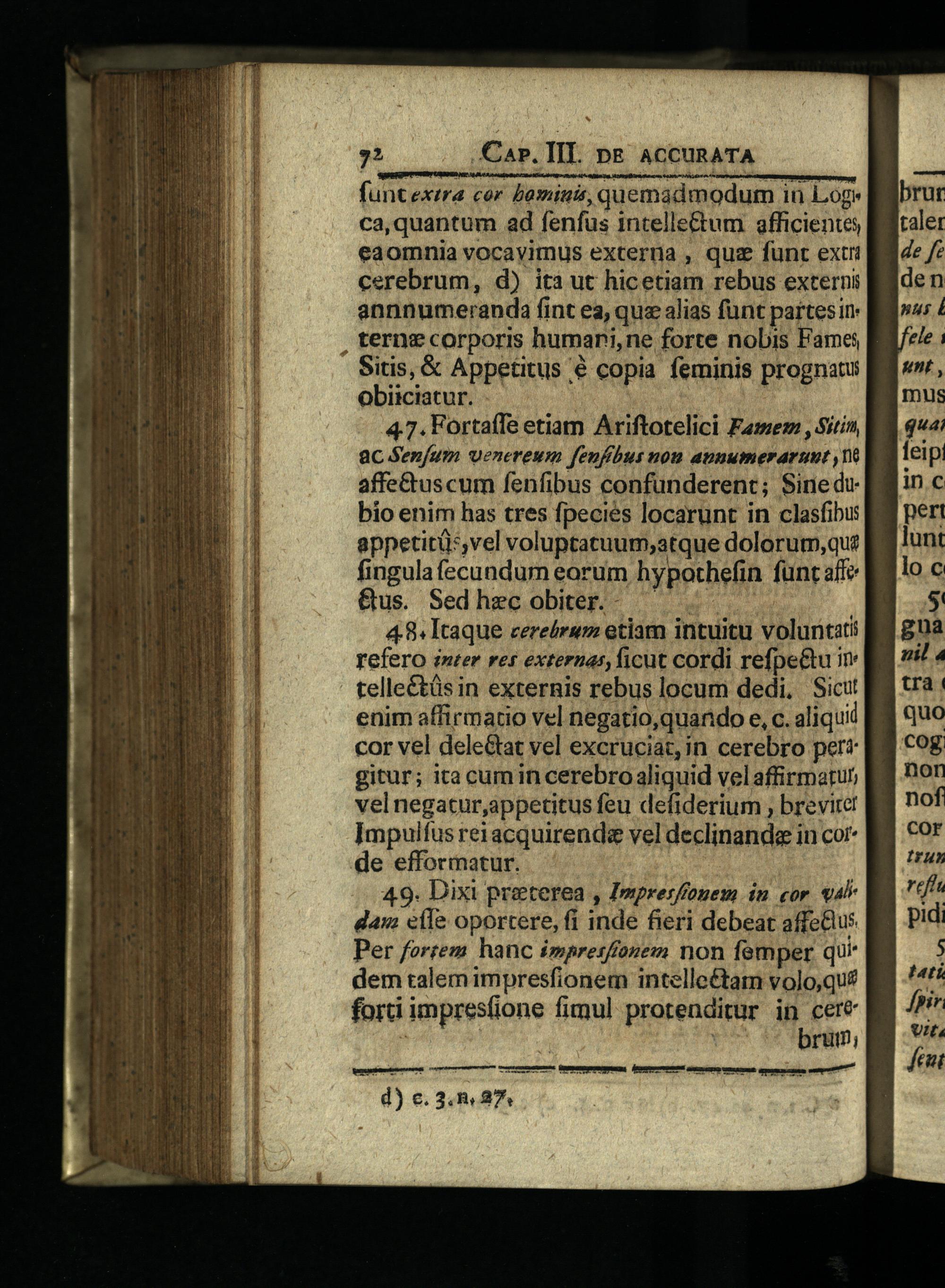 funtextra cor bamiuis, quemadmodum in Loge ca,quantum ad fenfus intelle&tum afficientes, eaomnia vocavimus externa, quz funt exti cerebrum, d) ita ut hicetiam rebus externi annnumeranda fint ea, quz alias fünt partesim terne corporis humari,ne forte nobis Fames Sitis,& Appetitus é copia feminis prognatui Obiiciatur.