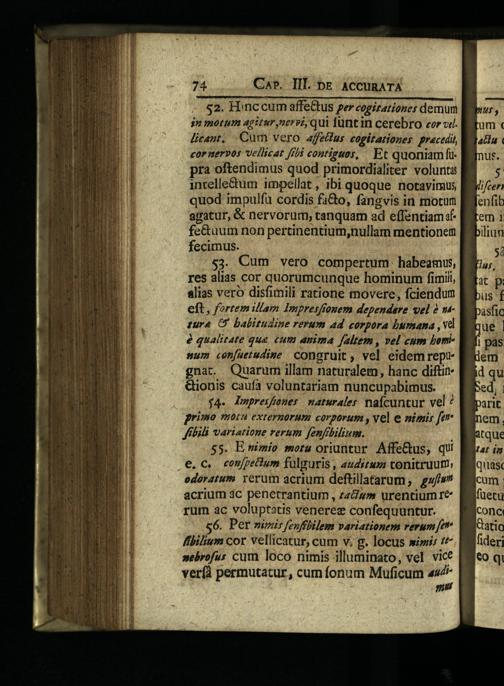 56. Per nimi: fenffbilem variationem rerum[e fiium cor vellicatur, cum v. g. locus simi; 7^ sebrofur cum loco nimis illuminato, vel vice ver(à permutatur, cum fonum Muficum«s