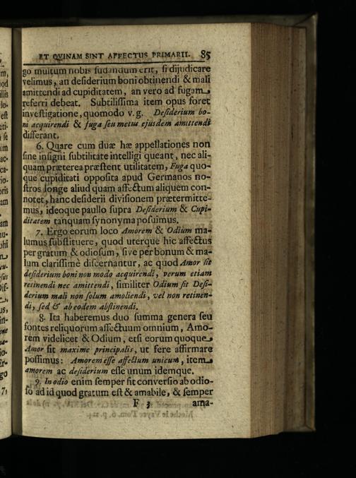 7. Ergo eorum loco 4moerem& Odium malumus fübflituere, quod uterque hic affe&us pergratum.& odiofum; five perbonum& malum clariffimé difcerhantur, ac quod tor // defiderium boni nou modo acquirendi, verum etiam retinendi mec amittendi, fimiliter. Odium ft. Deftderium mali non folum amoliendi., vel non retinendi, fed€ abeodem alflinendi, T