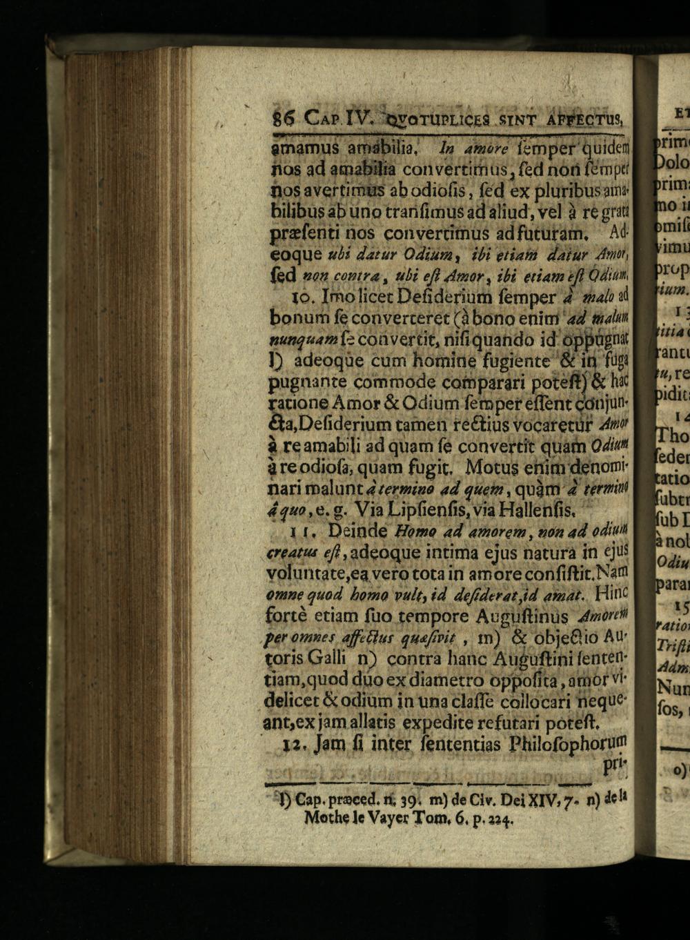 $6 Cap IV. JmvoTUPLiCEs SINT AFFECTUS, emamus amabilis Is amore(emper Quiden hos ad amabilia convertimus, fed non f&mpt nos avertimtis ab odiofis, féd ex pluribusam: bilibus ab uno trarifimus ad aliud, vel à ré rit prafenti nos convertimus adfüturam, Ac eoque«i darur Odium, ibi etiam daiur Anu, fed son contra, ubi efl Amor, ibi etiam«fl Odium -. 1o. Imolicet Defiderium femper 4' zial dl bonum fe converteret(à bono enit aZ malu nunquam: coüverüt, nifiquando id: oppügni D) adeoque cum homine fugiente& in pugnante commode cotparari poteft)& h atione Amor& Odium femper effent conjum a,Defiderium tamen reétius vocaretur zm à reamabili ad quam fe convertit quam 04i areodio(a, quam fugit, Motus enim denom. nari malunt 4 zermiuo ad quem, quàm 4 termin 4quo, e.g. Via Lipfienfis, via Hallenfis.*