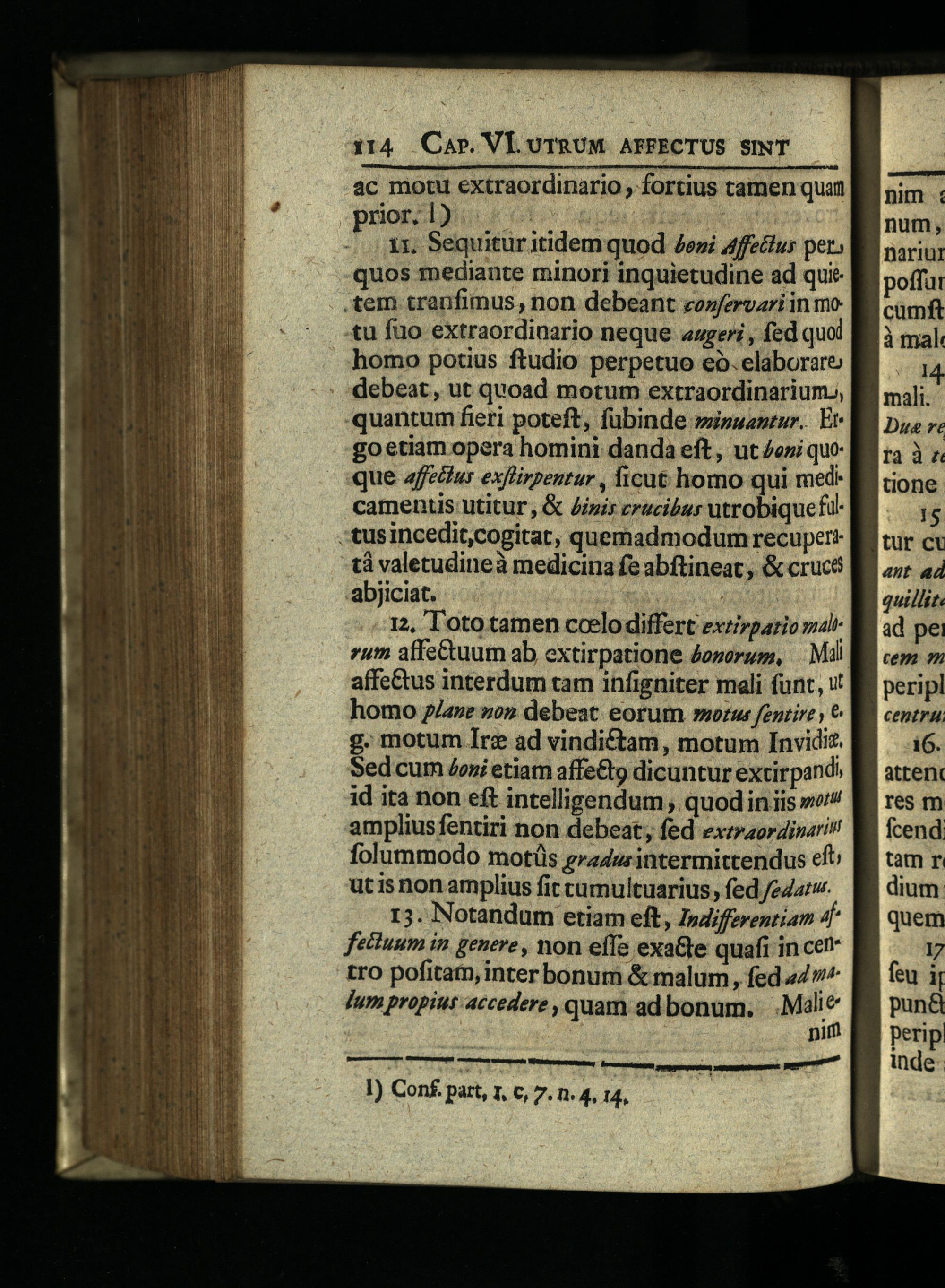 12, Toto tamen ccelodiffert exeirpario madzum affeCtuum ab extirpatione Zoserum,. Mil affectus interdum tam infigniter mali funt, ut homo g/aze»o» debeat eorum»mozw fenrire, g. motum Irz ad vindictam, motum Invidi. Sed cum Joxi etiam affe&to dicuntur extirpand? id ita non eft intelligendum, quodin iis»" amplius fentiri non debeat, fed exraordivarin folummodo motüs gradu intermittendus eft utis non amplius fit cumultuarius, fed /e4z:v.