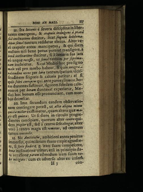 MINA dr tmt Vti Meu eU d UP EN p o1. Ita Iuvenis€ fevera difciplina inlibertatem emergens,&«r4pue indulgens 4 pravá fud anclinatione ducitur, licet /ngula bebdomadibus femel tantum reddatur ebrius. Alter ve 10 crapulz antea. mancipatus,& qui diem | nullum nifi bene potus poterat tranfigere, à jmd inclinatióne ducitur, fi àduxuria fua jara e usque receffit, ut femel tantum er feptima. sm inebrietur. Sicut Medicilioc profigno malo vel pro. motbo habent, fi quis /uegravaletudine utens per bere tantum fpatium viciffitudinem frigoris& caloris patitur; at fi quis febri£orreptus qui ante paroxyfmos rz.horas durantes fuftinuit, rigorem febrilem caloremve per boram duntaxat experiatur, Medici hoc bonum effe pronunciant, cum mor-bus decrefcar.