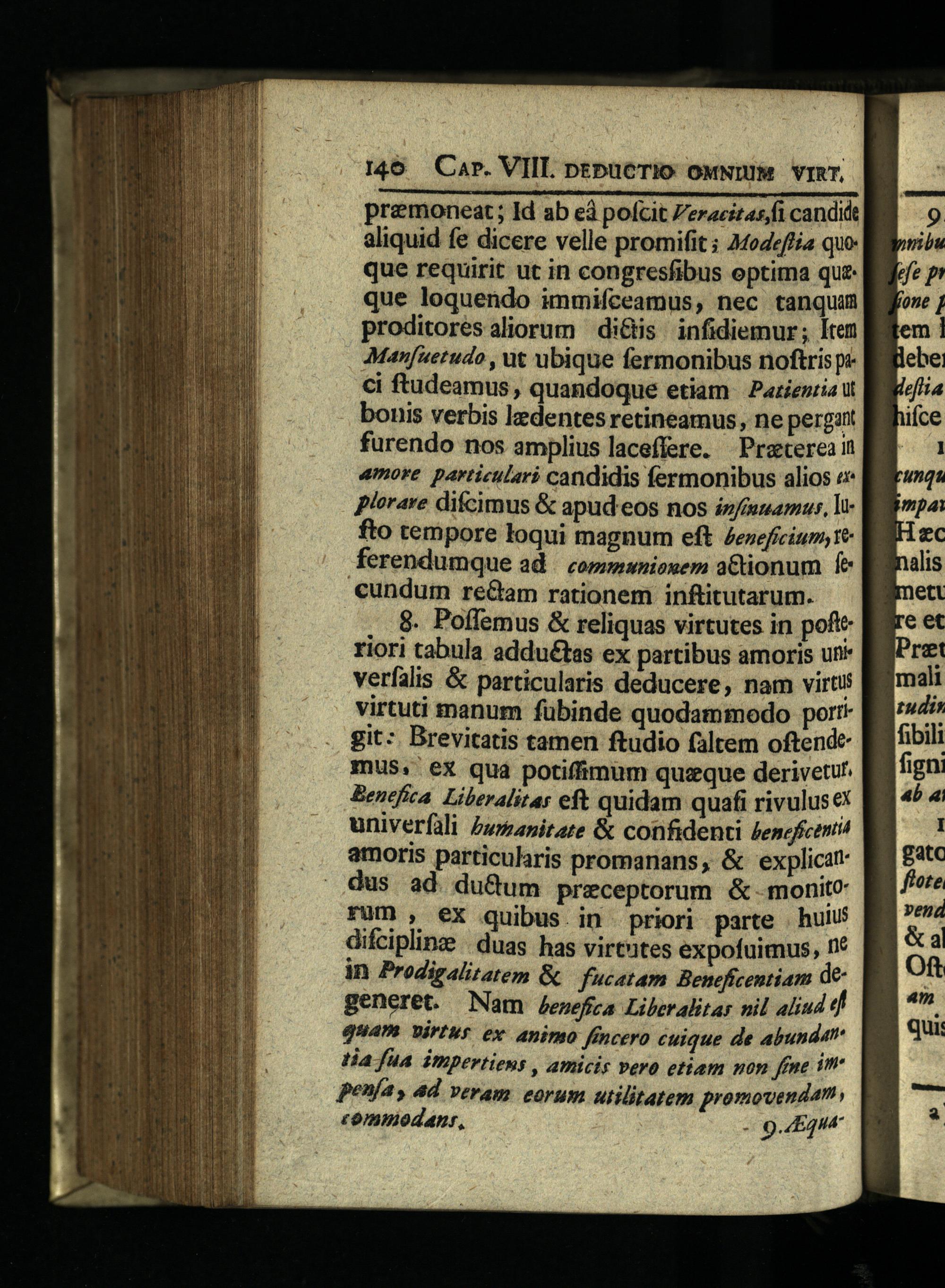 . 8. Poffemus& reliquas virtutes in poft riori tabula adduétas ex partibus amoris un* verfalis& particularis deducere, nam virtis virtuti manum fubinde quodammodo port* git: Brevitatis tamen ftudio faltem oftende mus. ex qua potiffimum quzque derivetu! Benefica Liberalitas eft quidam quafi rivuluse* univerfili Z/anitare& confidenti Jencficenti amoris particularis promanans,& explicat dus ad du&um preceptorum& monito fum, eX quibus in priori parte huius difcipline| duas has virtutes expofuimus, nt in Prodigalitatem& f'catam Beneficentiam degeneret. Nam /ewefza Lileralitar nil aliud tf quam WIus ex. animo fincero cuique de abundat tia fua impertiens, amicis vero etiam non fne im