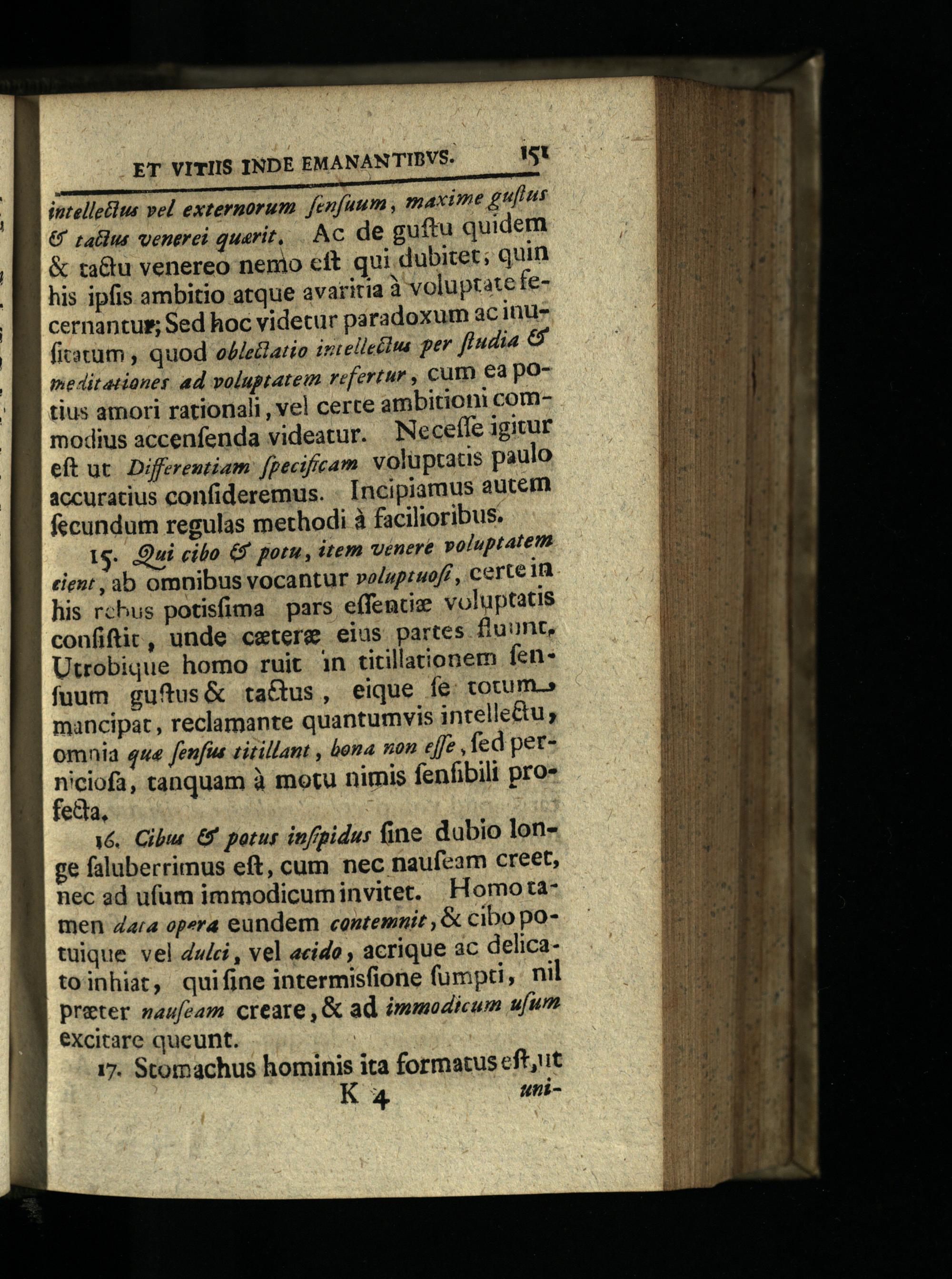 intelleéus vel externorum. fenfuum, maxime gufius € zaldus venerei quarit,. Ac de guftu quidem & ta&u venereo nemo cít qui dubitet; quin his ipfis ambitio atque avaritia à voluptate fecernantur; Sed hoc videtur paradoxum ac inu firatum, quod odJeario irtelleclma per fludia& meditationes. ad voluptatem refertur, curn ea potius amori rationali, vel certe ambitioni commodius accenfenda videatur. Necefle igitur eft ut. Diferentiam:[pecificam voluptatis paulo accuratius confideremus.- Incipiaruus autem fecundum regulas methodi à facilioribus.