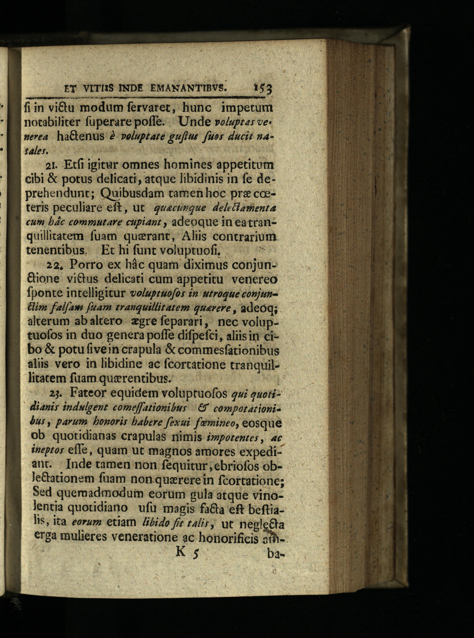 22, Porro ex hác quarn diximus copjun&ione vi&tus delicati cum appetitu venereo fponte intelligitur volupruofos in utroque conjunim falfam fuam tranquillitatem quarere, adeoq; alterum abaltero zgre feparari, nec voluptuofos in duo genera poffe difpefci, aliisin cibo& potu fivein crapula& commesfationibus aliis vero in libidine ac fcortatione tranquillitatem fuam querentibus.