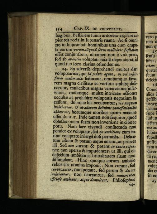 154 Car. IX. p& vorvPTATE, bagibus, beftialem fuum ardorero explere cupientes re&ta in lupanaria ruant.. Ac fi omnino in hujusmodi hominibus una cum crapula eorum veram aliquod fexur muliebris faflidium eff:t conjun&tum, id.camen non à voluptate, fed ab arariría voluptati mixtá dependeret,id quod fuo loco clarius oftendemus.; ...44. Ex adverfo deprehendi multos dari voluptuarios, qui i4 fedulo agunt, ve vel caflitJfmas muliercular feducant, omniumque favorem magna civilitate ac verfütia ambire didi cerunt, mulieribus magna veneratione inferviunt, quibusque. multe intricate a&i0nes occultz ac prohibitee voluptatis negotium fa: ceffunt, dumque his occupantur, vix wguam inebriautur, 6$ abaliorum belluinis come[[ationiba 4bborrezt, horumque moribus quam maxime offenduntur, Inde tamen non fequitur, quod oble&ationem fuam non inveniant in ciboac potu,"Nam hec vivendi confüetudo non pendet ex voluptate, fed ex 4mi£ioze cum eorum voluptate inlargá dofi permifta.| Delicatum cibum& potum zque amant, ac priores illi; Sed»o» vorant.& potant i» zanza copia: nec tam aperte& impudenter, uc illi, qui oh defettum ambitionis brutalitatem fuam non diffimulant, Hinc. quoque eorum ambitio rebus alia nomina imponit: Non vorant, fed cemotvantur, non potant, fed parum& 4ecore inebriautur, non fÍcortantur, fed eulierculat efficiofe ambiunt, atque demulcent,| Philofophus ve