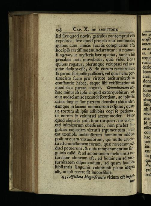 fed five quod novit, garrulos contemptui eff expofitos, five quod propria eius commoda, «uibus cum amicis fucatis complicatus efi; hocipfo certiffumeenunciarentur: Actametfi rogetur, ut myfteria hec aperiat; tamen hi precibus non. movebitur, quia videt hos quibus rogatur, plerunque voluptati vel avà xitie deditoseffe,& de eorum taciturnitaté fe parum fibi poffe polliceri, vel quia hanc per tinaciam fuam pro virtute taciturnitatis ac conftantie habet, eaque fibi exiftimationem aspudalios parere cogitat,—Comminarione adhuc minusab ipfo aliquid extorquebitur, ob eius audaciam ac excandefcentiam, ac ipfe fibi citius linguc fuz partem dentibus abfcindet, tamque in faciem inimicorum exfpuet, quam Aut tortura ab ipfis adhibita cogi fe patiatur; ut eorum fe voluntati accommodet.— Hinc quod aliqui fe paffi funt torqueri, ne volut tati inimicorum obedirent, non prabet fingularis cujusdam virtutis argumentum, qu :tot exempla malitioforum hominum adduc poffunt quam virtuoforum, qui nullo crucit tu adconfeffionem eorum, qu noverant, sdduci potuerunt,& quia temperamentum far .guinis calidi& ad ambitionem inclinantis n* turaliter idoneum eft, ad hominem ad tact turnitatem difponendum, ad quam humid? fübftantia fanguinis voluptuofi plane inep? eft, ut ipfi tacere fit imposfibile.