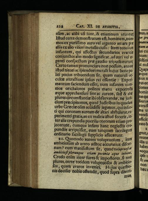 22. Quomodo autem voluptuofum, ieri ambitiofum ab avaro adhuc accuratius difcernam? cum manifeftum fit,"quod'vo/uruo/^ «mbirioff plerunque| eriam pecihié«que inhith. Credo enim inter füres& impoftores fr non plures, certe totidem voluptuofos& ambitio" fos, quam avaros inveniri, Hujus quzfti" nisdecifio nobis oftendit, quod fupra dixer