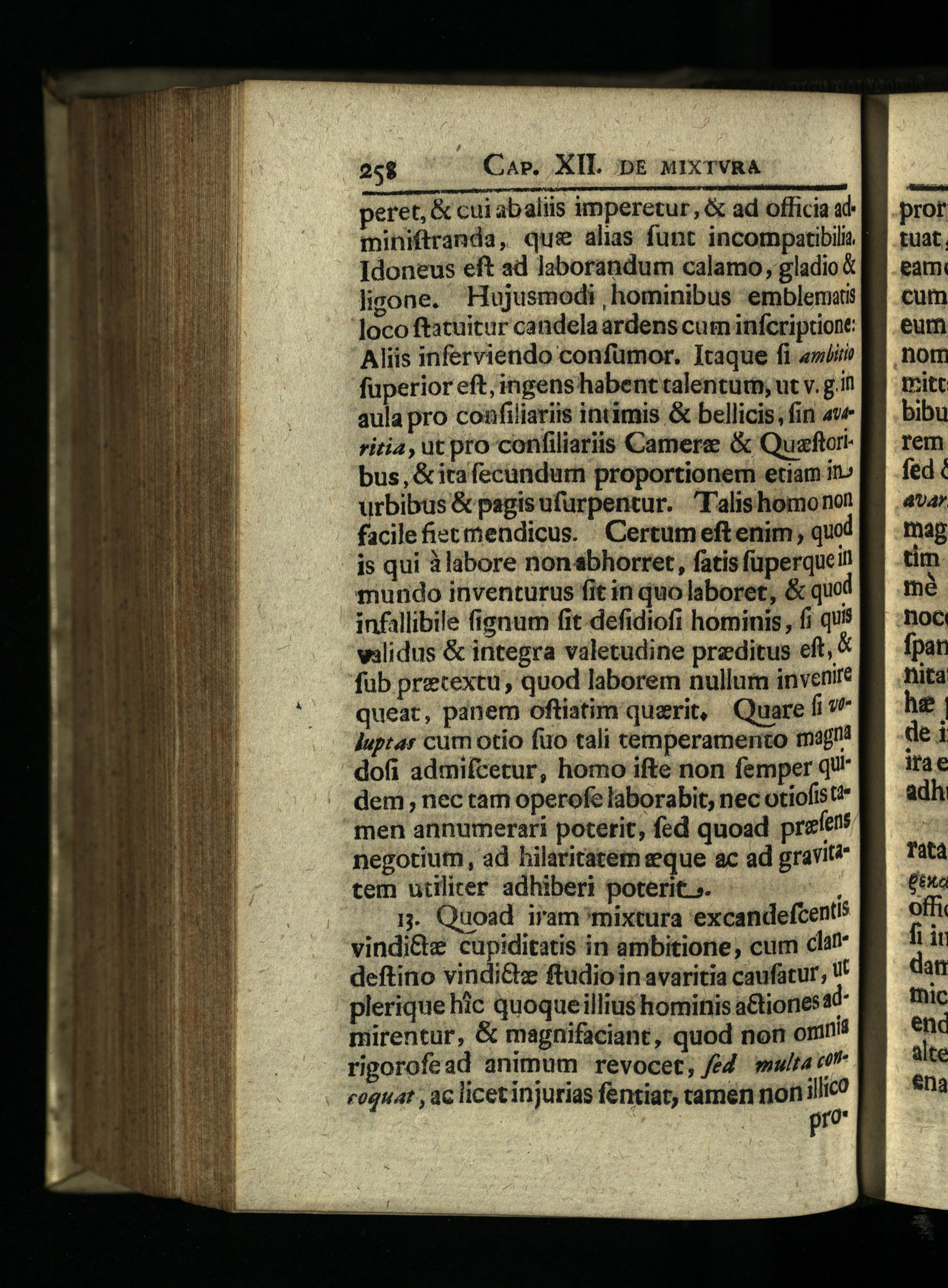 wslidus& integra valetudine preditus eft, füb pretextu, quod laborem nullum invenire queat, panem oftiatim querit, Quare fiv" Juptar cum otio fuo tali temperamento 14g? dofi admifcetur, homo ifte non femper qu dem nec tam operofe laborabit, nec otiofistt* "men annumerari poterit, fed quoad przlt!s negotiutn, ad hilaritatem eque ac ad gravi" tem utiliter adhiberi poterit».: 13. Quoad. iram'?mixtura excandefcenti vindi& cupiditatis in ambitione, cum cla deftino vindi&e ftudio in avaritia caufatur, U' plerique hic quoqueillius hominis a&tiones 4C mirentur,& magnifaciant, quod non omn? riporofead animum revocet, od multa «oquat, ac licet injurias fentiat, camen non illico ro"