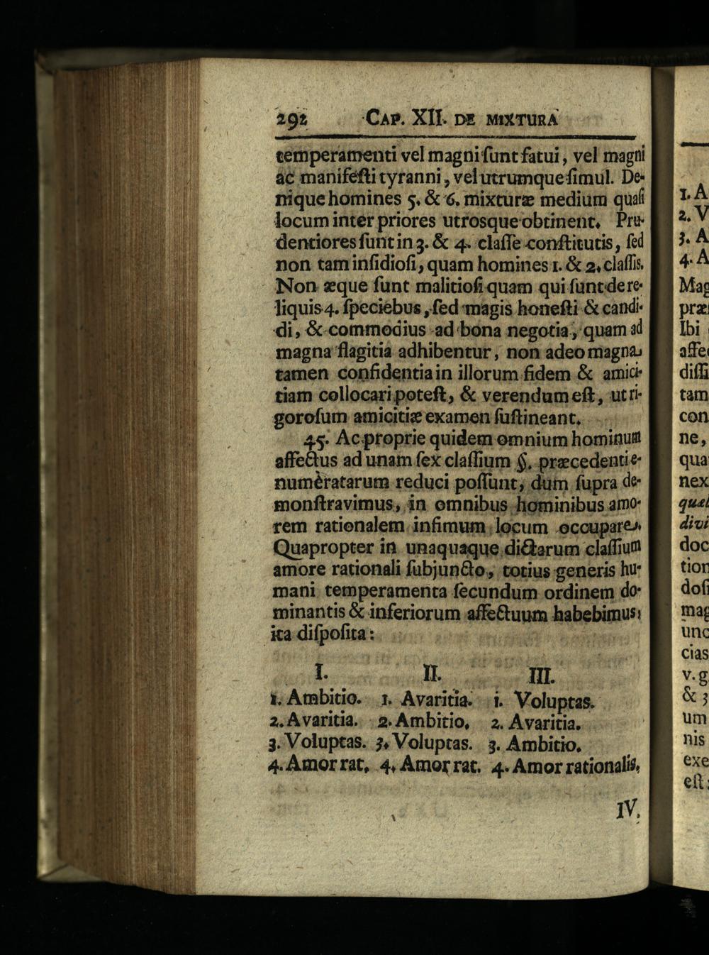 45. Acptoprie quidem omnium hominum affectus ad unam fex claffium$, precedentie numératarum reduci poffunt; dum fupra demonftravimus, in omnibus hominibus amo rem ratienalem infimum; locum.occupare^ Quapropter in. unaquaque.di&tarum claffium amore rationali fubjunGto, totius generis hu: mani temperamenta fecundum ordinem do minantis& inferiorum affe&uum habebimus: