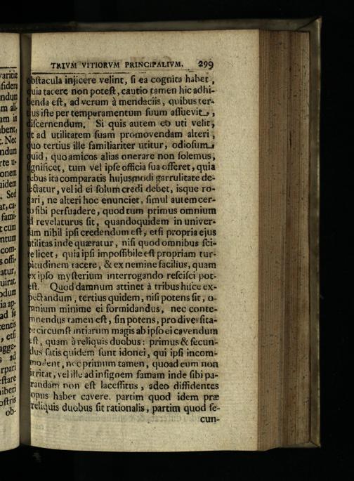 bítacula injicere velint, fi ea cognica habet, uia tacere non poteft, cantio ramen hic adhienda eft, ad verum à mendaciis, quibus terusifte per temperamentum fuum affuevit» ifcernendum, Si quis autem eb uti velit; tad utilitatem fuam promovendam alteri, iuo tertius ille familiariter utitur, odiofum s uid, quo amicos alias onerare non folemus; gnificet, tum vel ipfe officia fua offeret, quia bus icacomparatis hujusmodi garrulitate deGatur, velid ei folurh credi debet, isque roari, ne alteri hoc enunciet, fimul autemcerfibi perfuadere, quod tum primus omnium l revelaturus fit, quandoquidem in univer: m nihil ipfi credendum eft; etfi propria ejus tilitas inde queratur, nifi quod omnibus fcielicet, quiaipfi impoffibileeft propriam tur'icudinem tacere,& ex nemine facilius, quam xipfo myfteriüm interrogando refciíci potHt.^ Quod damnum attinet à tribushiíce exbc&andum, tertius quidem, nifi potens fit, oanium minime eiformidandus, nec conte. nendus tamen eft, fin potens, prodive: fita? circumftintiarum magis ab ipfo ei cavendum ft, quam àreliquis duobus: primus& fecunlus faris quidem funt idonei, qui ipfi incomoJent, ncc primum tamen, quoad eum non irritat, velilleadinfigeem famam inde(ibi parandam non eft laceffitus, adeo diffidentes opus haber cavere. partim quod idem pre teliquis duobus fit rationalis, partim quod fecun