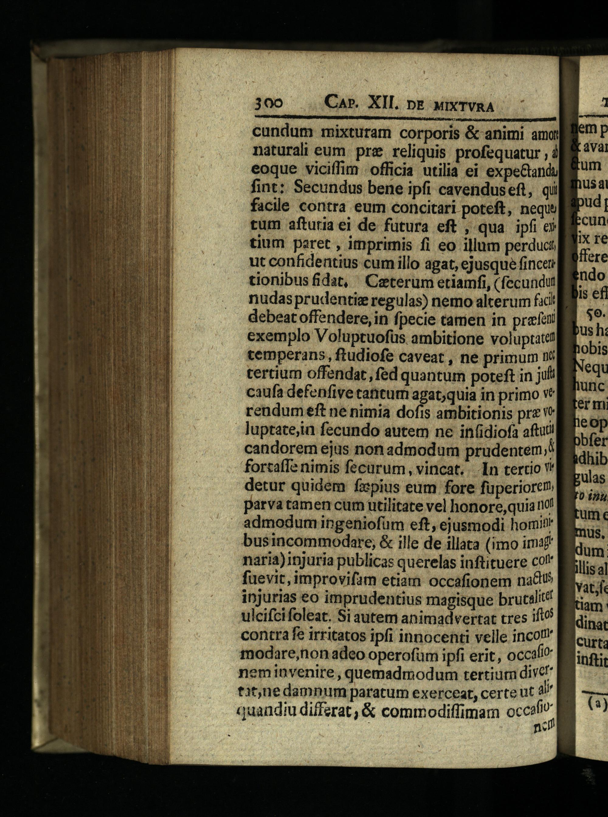 Sia PS Baz is std iti RR cundum mixturam corporis& animi amot naturali eum pre reliquis profequatur, d eoque viciffim officia utilia ei expeCtandu fint: Secundus bene ipfi cavenduseft, qii facile contra eum concitari poteft, nequ tum afturia ei de futura eft, qua ipfi&i tium paret, imprimis fi eo illum perduct ut confidentius cum illo agat, ejusque incer tionibus fidat, Ceterum etiamfi,(fecundu nudas prudentie regulas) nemo alterum fact debeat offendere, in fpecie tamen in prae exemplo Voluptuofüs ambitione voluptate! temperans, ftudiofe caveat, ne primum n& tertium offendat, fed quantum poteft in juli caufa defenfive cantum agat;quia in primo vt rendum eft ne nimia dofis ambitionis prz v luptate,in fecundo autem ne infidiofa aftu! candorem ejus non admodum prudentem: fortaffe nimis fecarum, vincat...In tercio'* detur quidem fzpius eum fore fuperiore parvatamen cum utilitate vel honore,quia n? admodum ingeniofüm eft, ejusmodi homin" busincommodare,& ille de illata(imo imaf' naria)injuria publicas querelas inftituere co!' fuevit, improvifam etiam occafionem nati injurias éo imprudentius magisque bructlitt ulcifcifoleat. Si autem animadvertat tres ift contrafe irritatos ipfi innocenti velle inco modare,non adeo operofüm ipfi erit, occali? neminvenire, quemadmodum tertium dive titne damnum paratum exerceat, certe ut 2