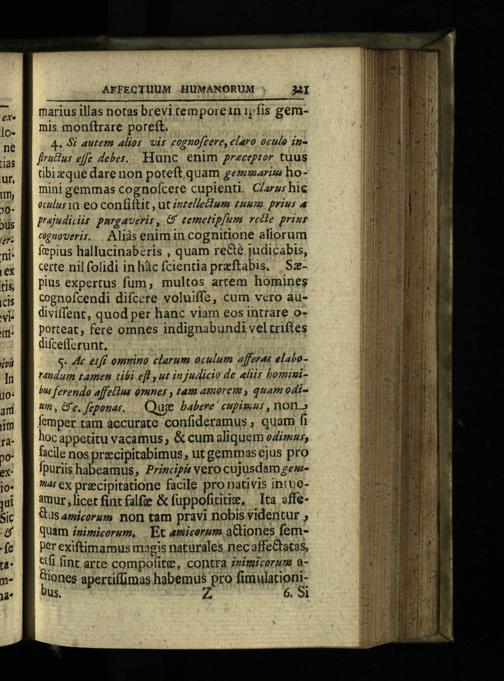 &. hc etf omnino clarum oculum afferas elabo"andum tamen tibi efl y ut in judicio de aliis bominibw ferendo affeilus ores, tam amorem, quam odiUn, Ge. feponas,. Quse babere cupimus, non» femper tam accurate confideramus, quam fi hocappetitu vacamus,& cum aliquem edimas, ficile nos przcipitabimus, ut gemmas ejus pro Ipuriis habeamus, Principis vero cujusdam gem "4t ex preecipitatione facile pro nativis intueamur licet finc falfe& fuppofiritie,— Ica affe