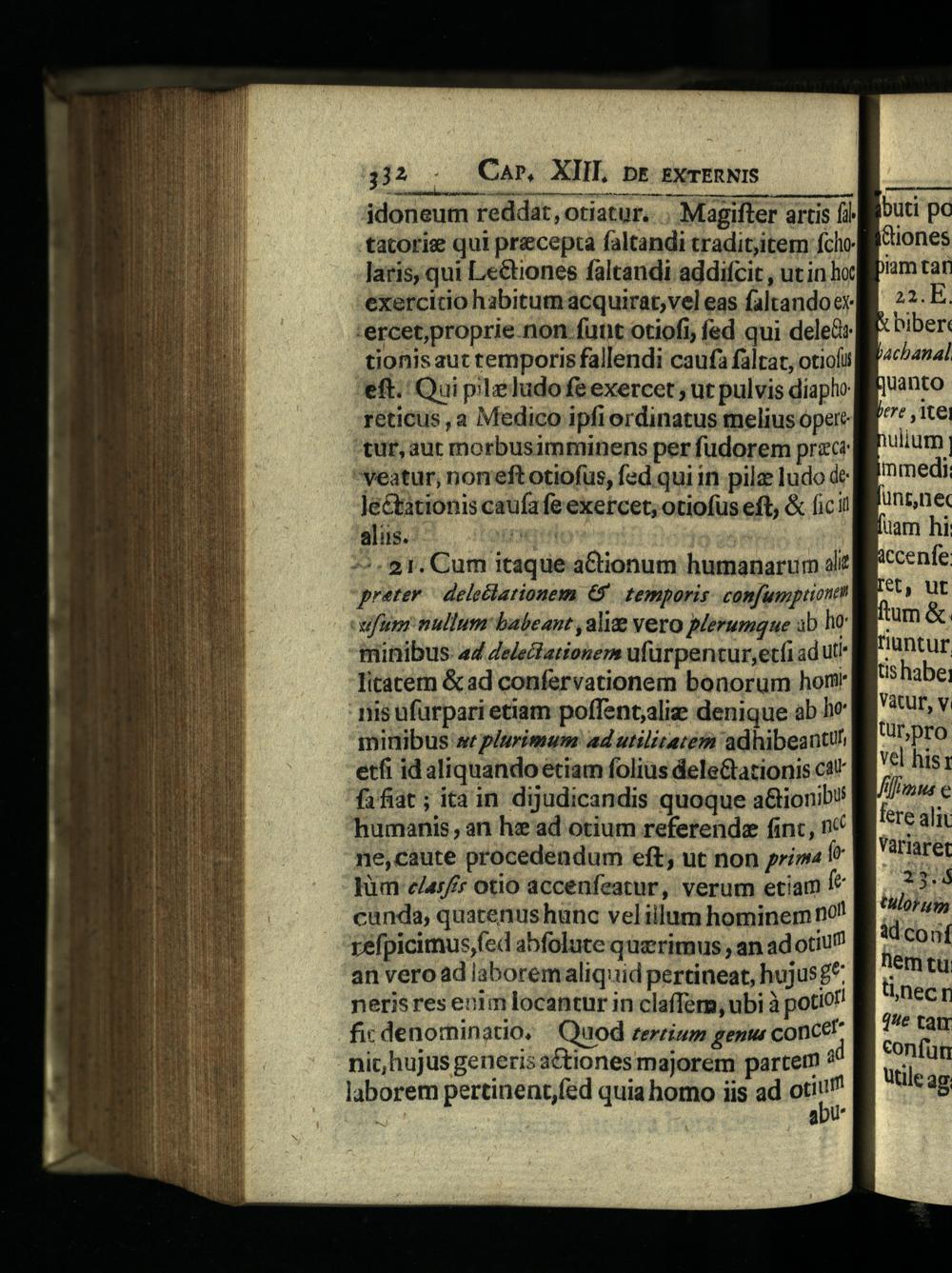idoneum reddat, otiatur... Magifter artis(i tatorie qui precepta faltandi traditjitem fcholaris, qui Lectiones faltandi addifcit, utin ho exercitio habitum acquirat,vel eas faltando c :ercetproprie non funt otiofi; fed qui dele? tionis aut temporis fallendi caufa fáltat, otioli eft. Qui pleludofe exercet, ut pulvis diapho reticus, a Medico ipfi ordinatus melius opere tur, aut morbusimminens per fudorem przce "veatur, non'eft otiofus, fsd qui in pila ludo de Je&tationis caufa fe exercet, otiofus eft,& fici! alus. M EREHA 2.91. Cum itaque aCtionum humanarum alit prater| deleélationem€9. temporis: comfumpuonm cxifum: mullum babeant, alie vero plerumque ab ho minibus a4 Zele/Tationerm ufürpentur,ecfi ad uti Iicacem& ad confervationem bonorum homr nisufurpari etiam poffent;alie denique ab he minibus wr plurimum ad utilitatem adhibeantuh etfi id aliquandoetiam folius deleGationis ci fafiat; ita in. dijudicandis quoque a&ionib? humanis, an hz ad otium referendz finc, n ne,caute procedendum eft, ut non prima V Ium e/4r/ otio accenfeatur, verum etiam!* cunda, quatenus hunc veliilum hominem n?! refpicimus,fed abfolute quzrimus, an ad otiu? an vero ad laboremaliquid pertineat, hujus£*. neris res enim locantur in claffern, ubi à potio? fic denominatio,| Quod zerzium genus conce" nichujus generis aétiones majorem partem?